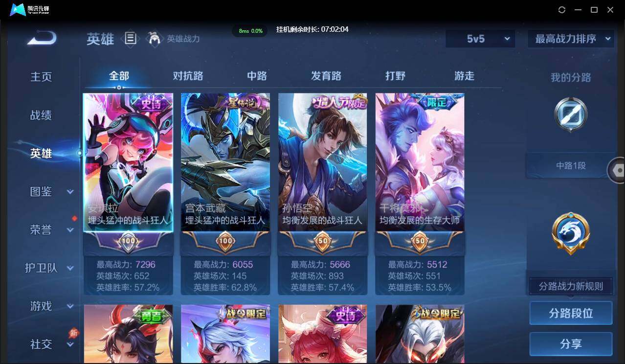 W10022【安卓区V8】可二次实名,英雄104,皮肤161,典藏:李白鸣剑.曳