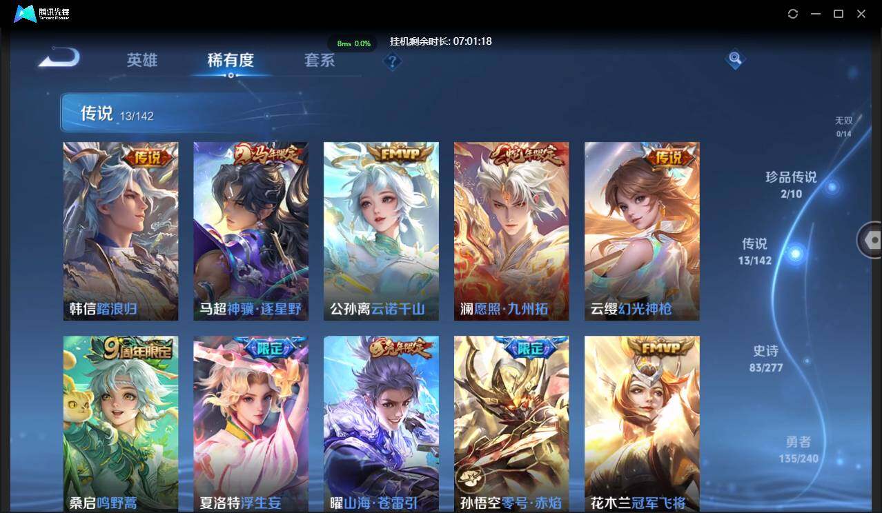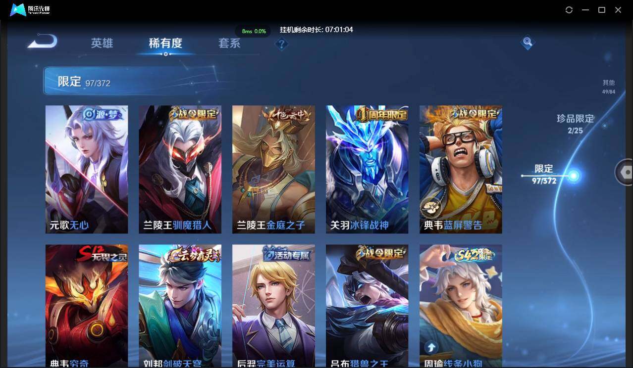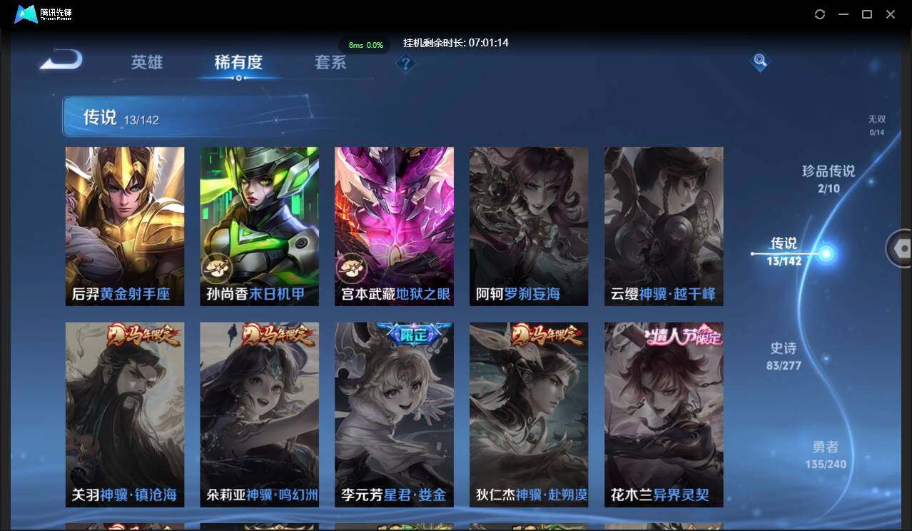 W10005,【安卓QQ】,V8,英雄84,皮肤93,典藏:全息碎影,凤求凰,(