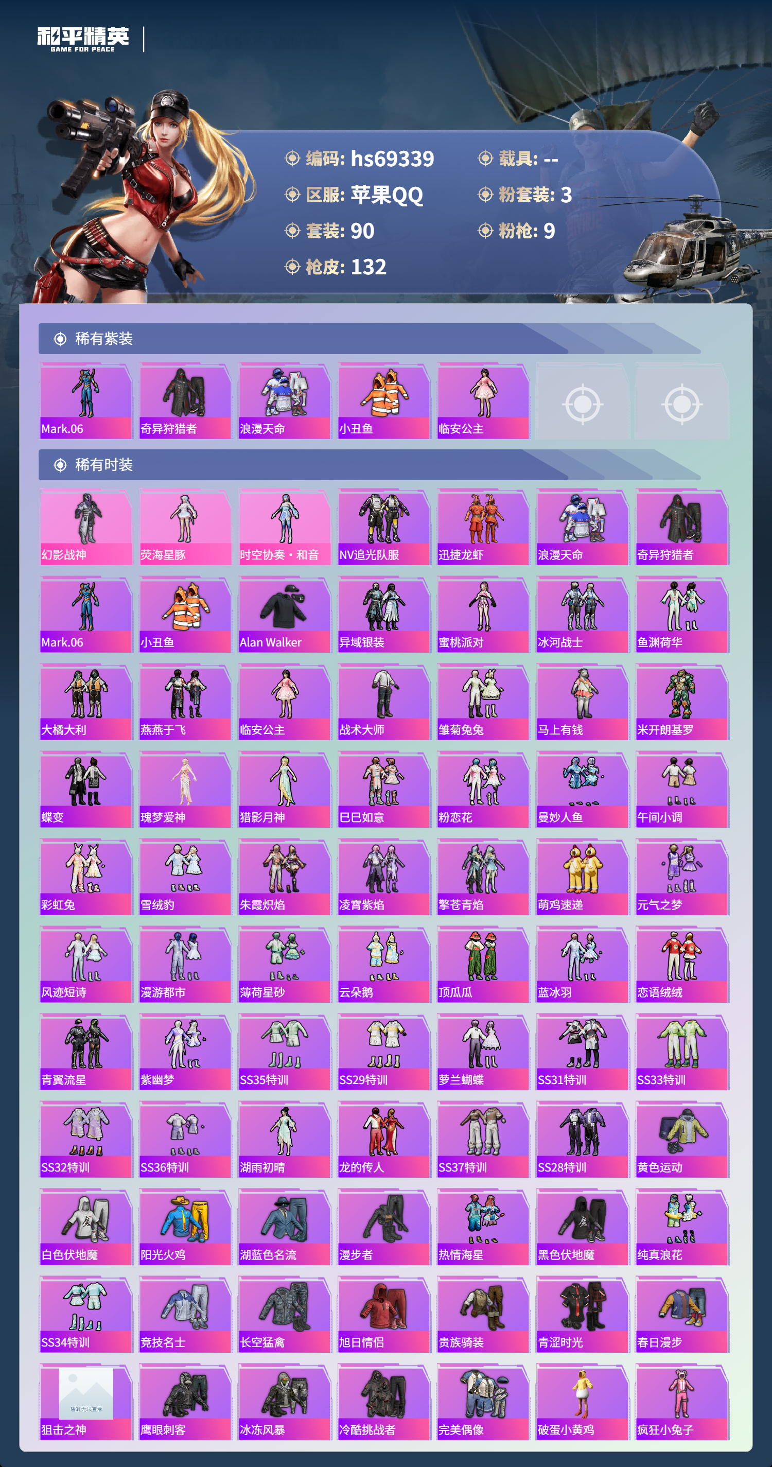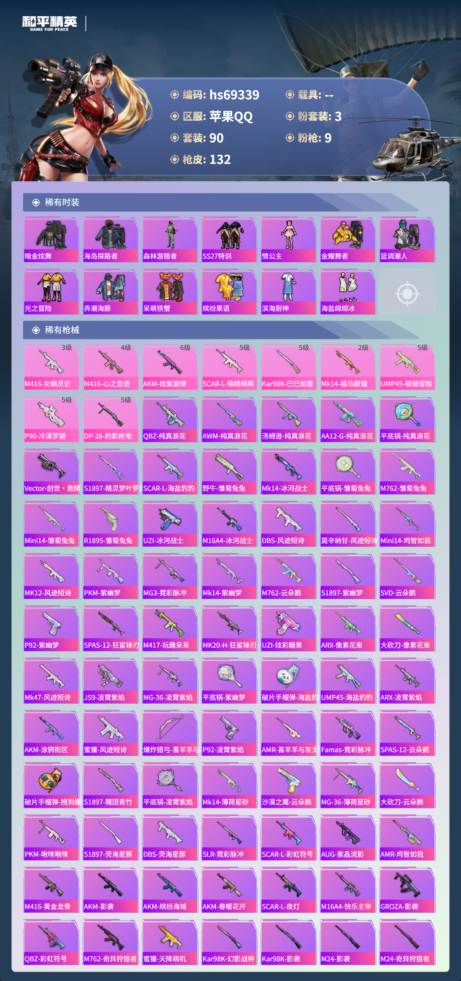 PX_2564723-,苹果手Q-7王牌印记-3粉装-9特效枪-40394热力值-90套装-132枪皮-4卓越印记-2传奇印记