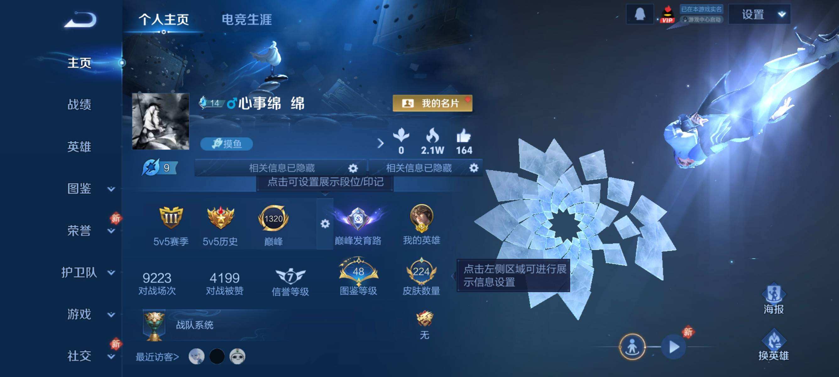 W10022【安卓区V8】可二次实名,英雄104,皮肤161,典藏:李白鸣剑.曳