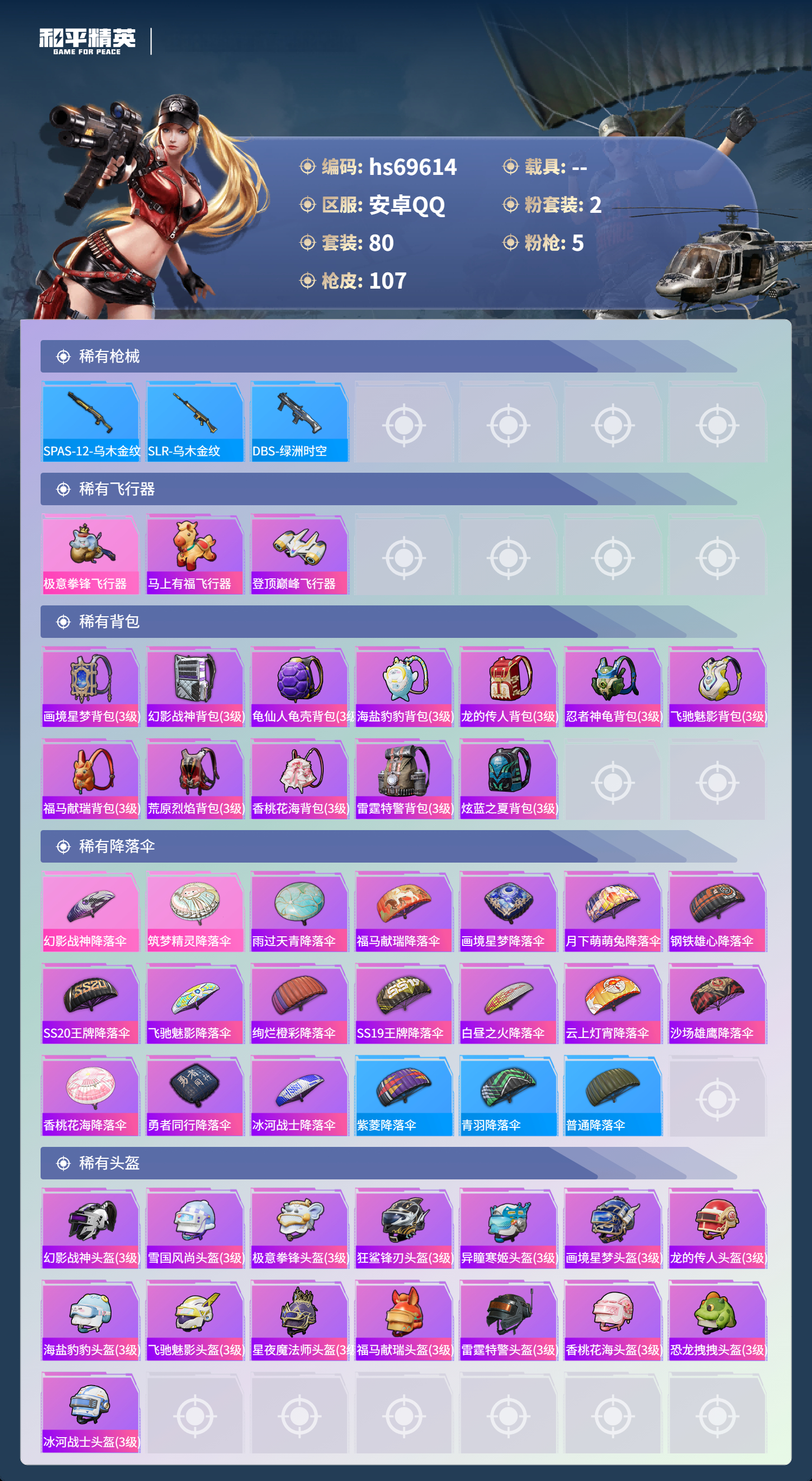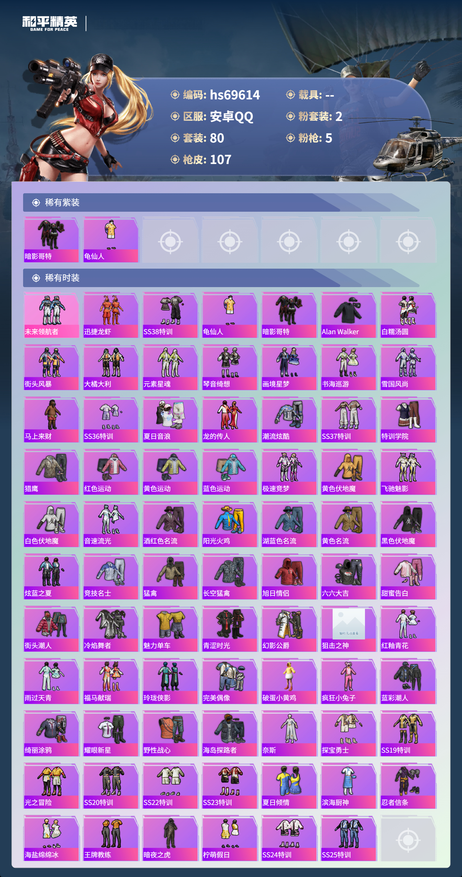 PX_2568096-,安卓手Q-4王牌印记-2粉装-5特效枪-28382热力值-80套装-107枪皮-1卓越印记-1传奇印记