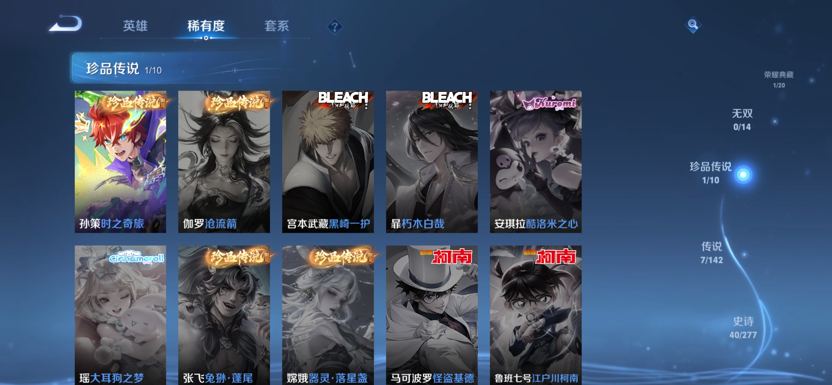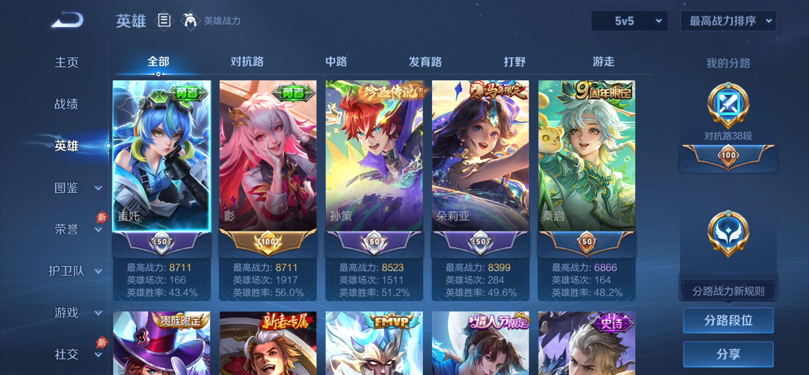 W10022【安卓区V8】可二次实名,英雄104,皮肤161,典藏:李白鸣剑.曳