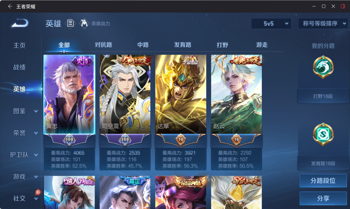 W10022【安卓区V8】可二次实名,英雄104,皮肤161,典藏:李白鸣剑.曳