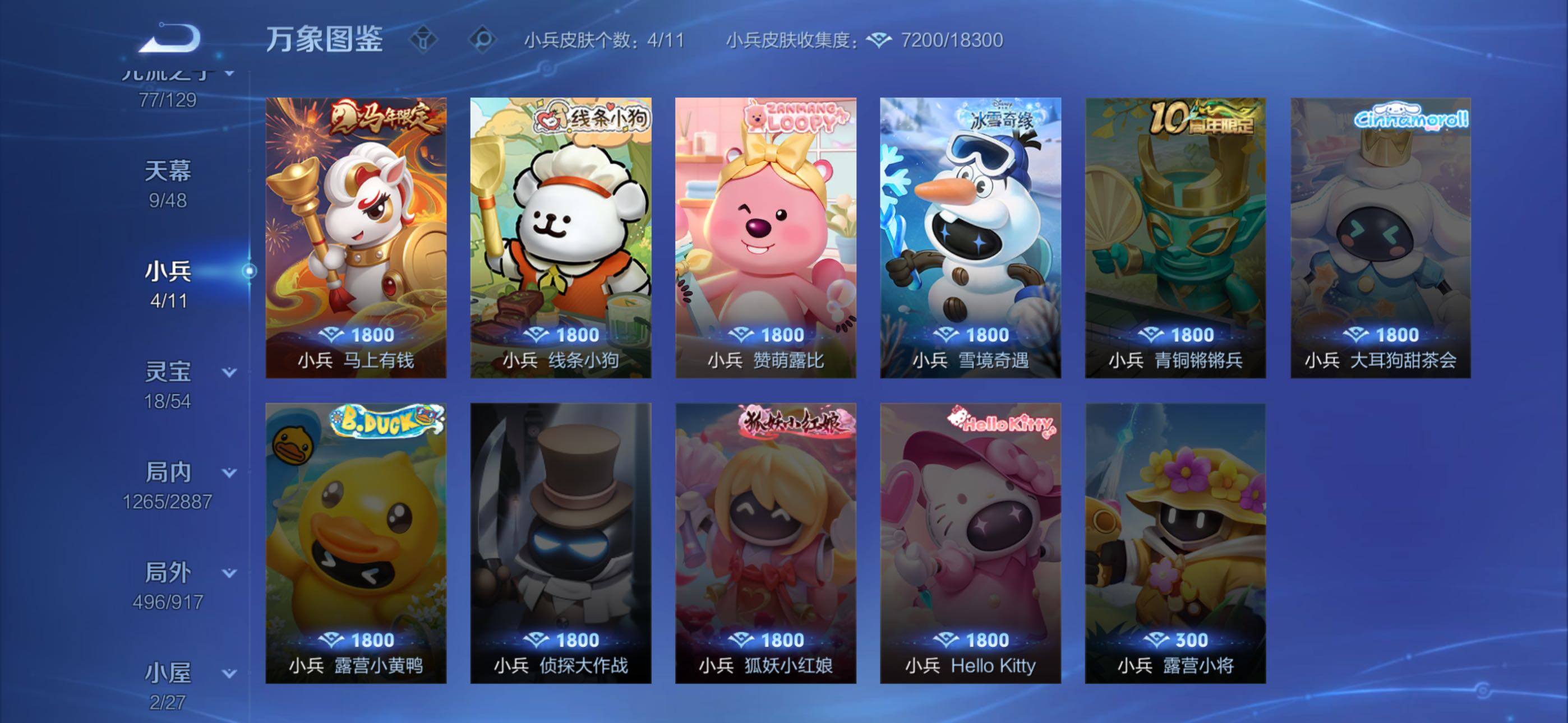 【小兵皮肤】:小兵线条小狗,小兵雪境奇遇,小兵赞萌露比,小兵马上有钱