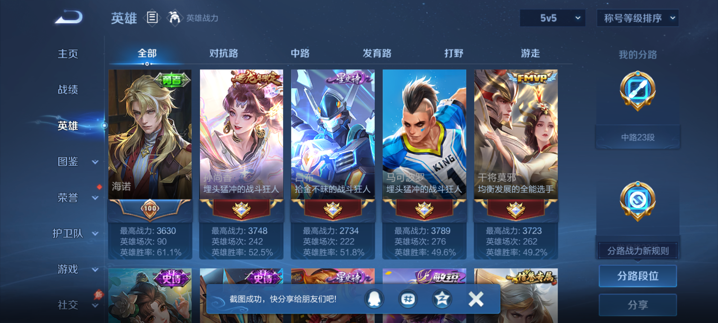 W10022【安卓区V8】可二次实名,英雄104,皮肤161,典藏:李白鸣剑.曳