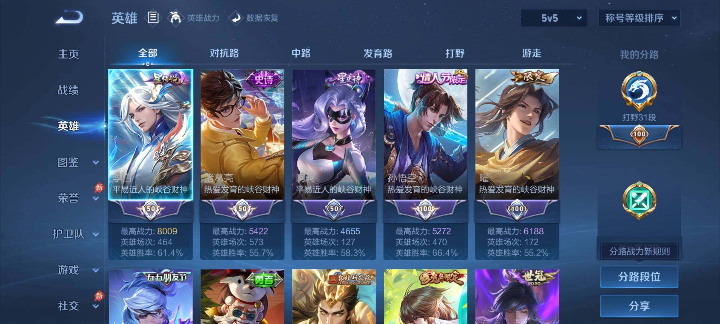 【英雄全皮】:刘邦全皮,孙权全皮,镜全皮,夏洛特全皮,莱西奥全皮,戈娅全皮,空空儿全皮,海诺全皮