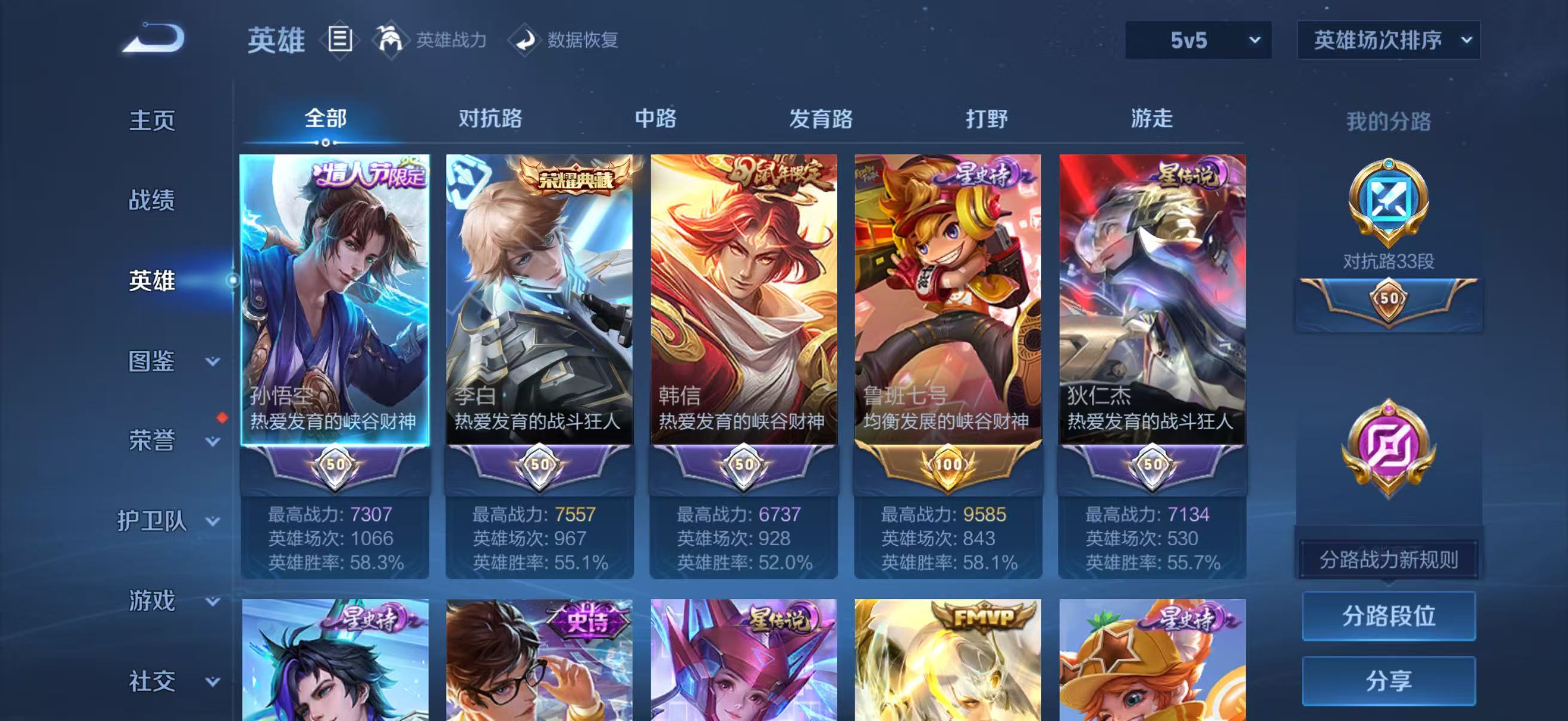 【9,稀有英雄】敖隐,嬴政,不知火舞,橘右京,夏洛特,娜可露露,韩信,艾琳,赵云,