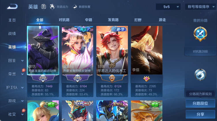 W10022【安卓区V8】可二次实名,英雄104,皮肤161,典藏:李白鸣剑.曳