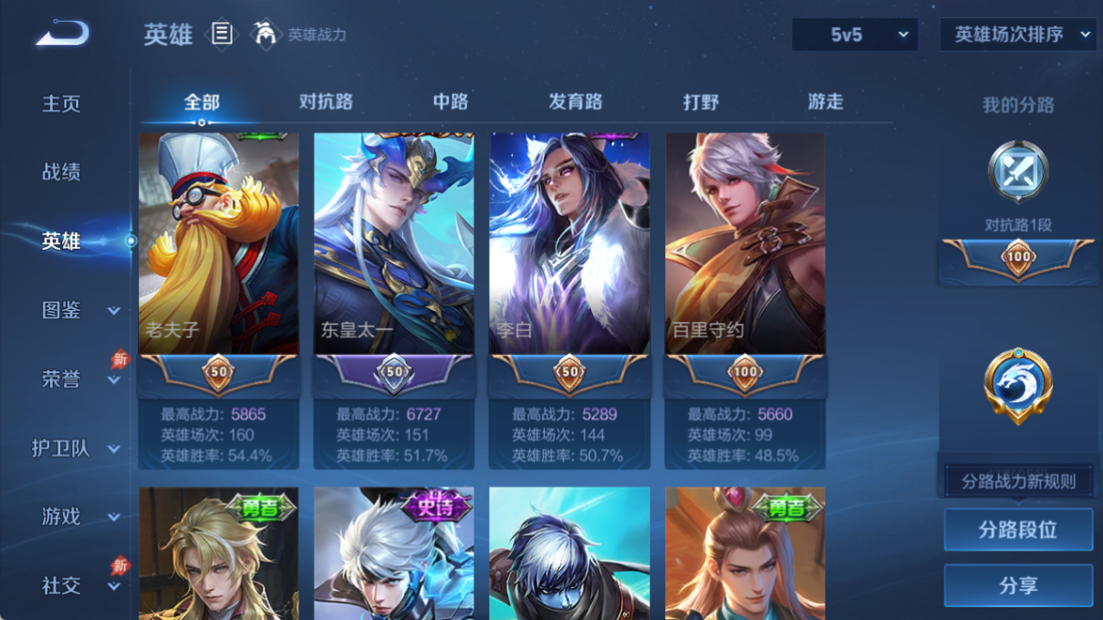 W10022【安卓区V8】可二次实名,英雄104,皮肤161,典藏:李白鸣剑.曳