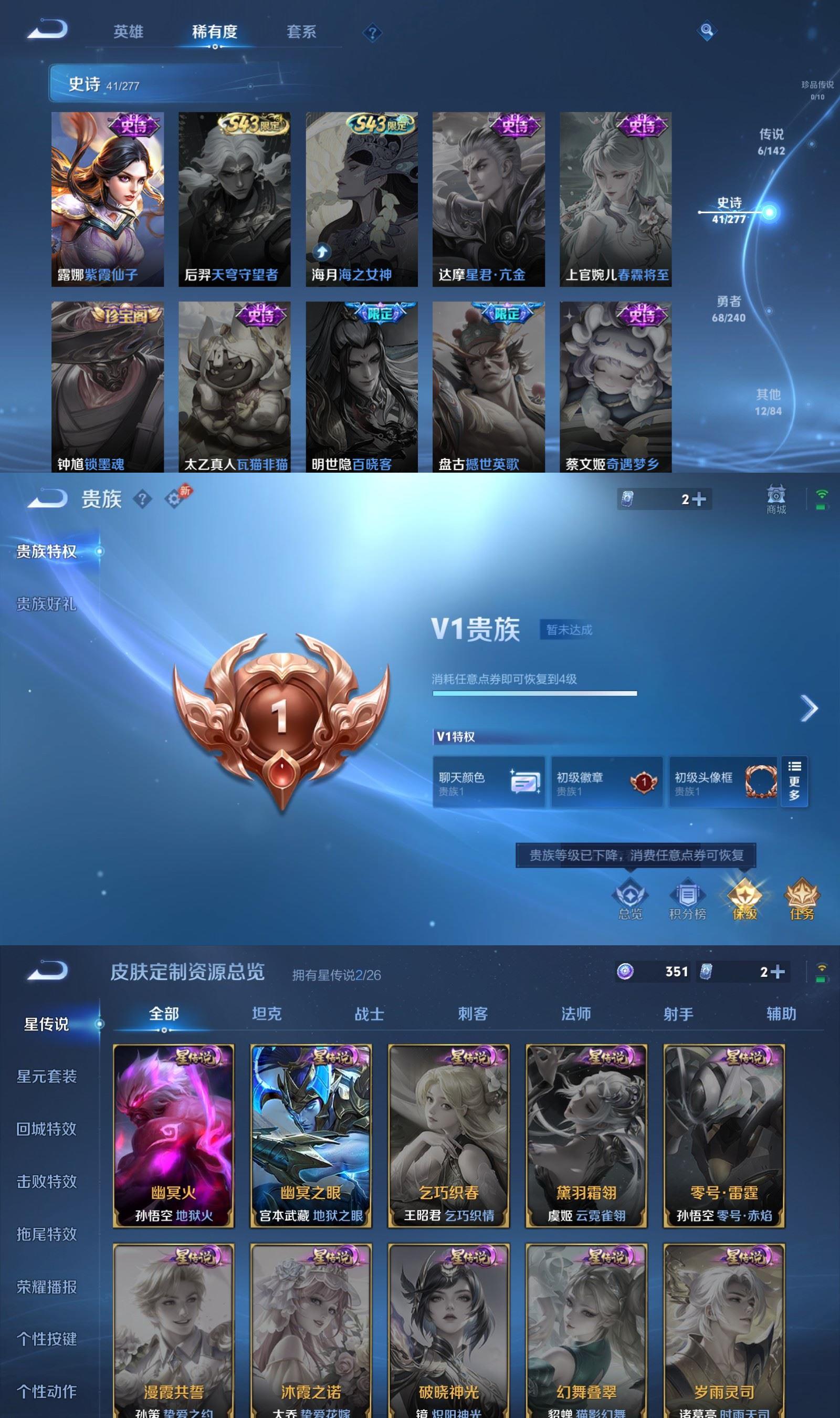 PX_2546341-1金标,韩信,苹果Q-127皮肤6传说-,41史诗40限定,351紫星币,253幸运值,