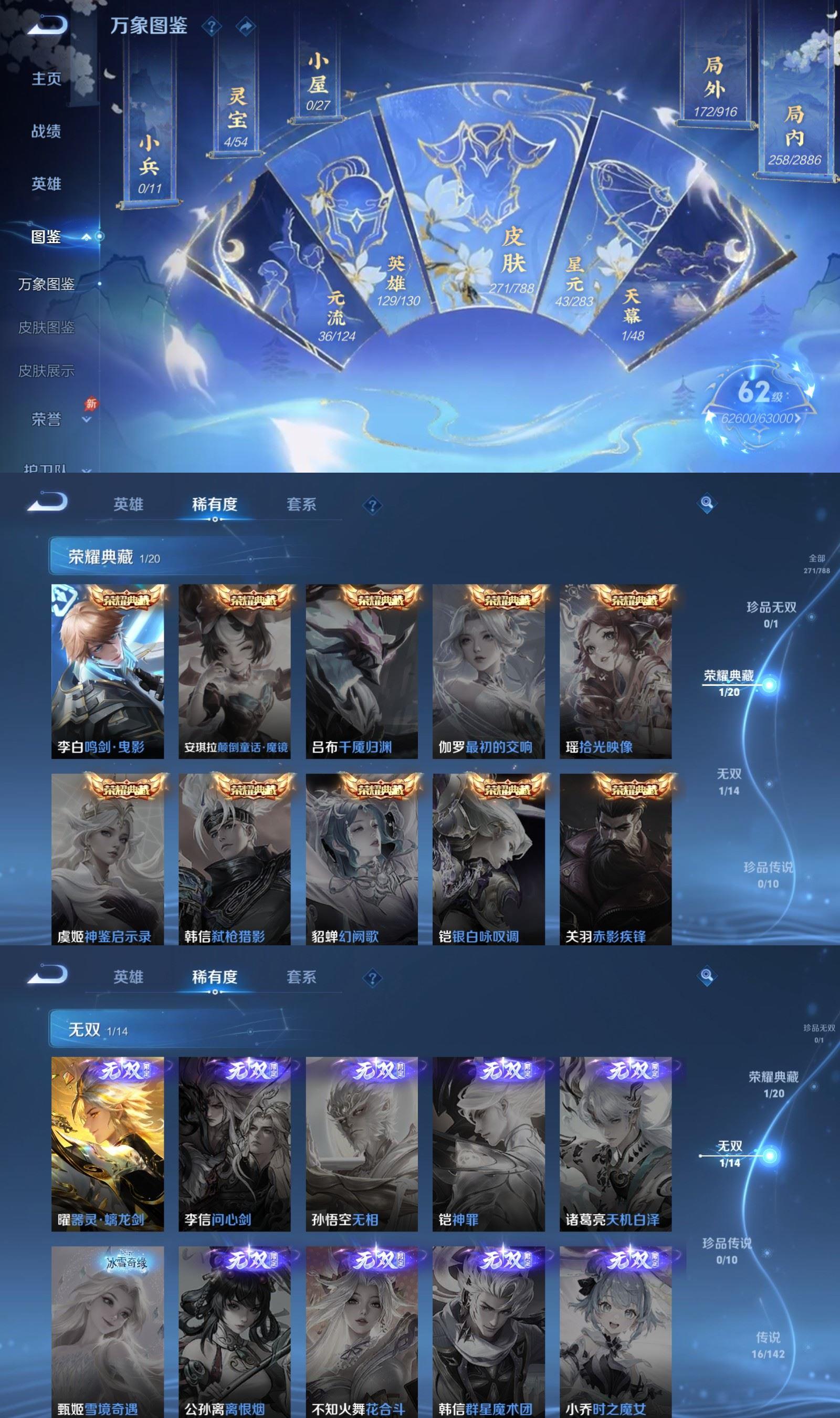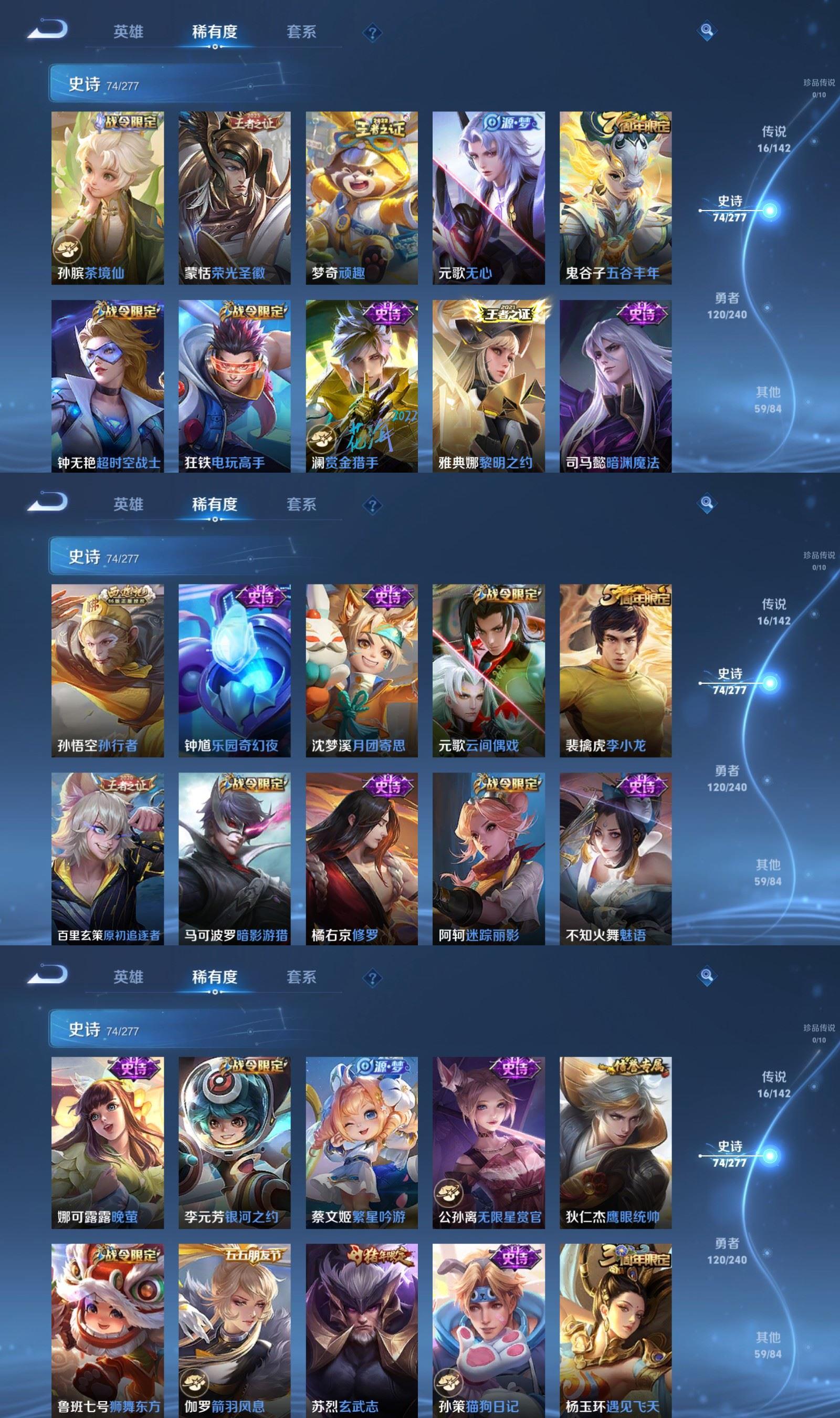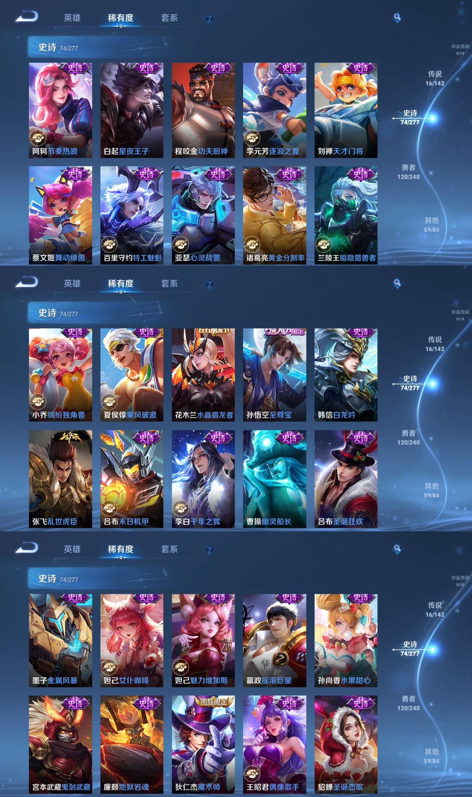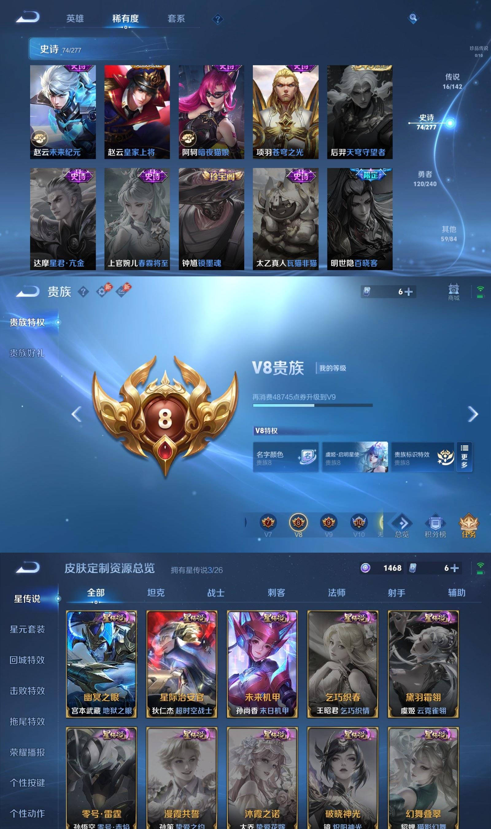 PX_2547998-苹果Q-V8-271皮肤1典藏1无双16传说3星元74史诗85限定-1468紫星币,210幸运值,