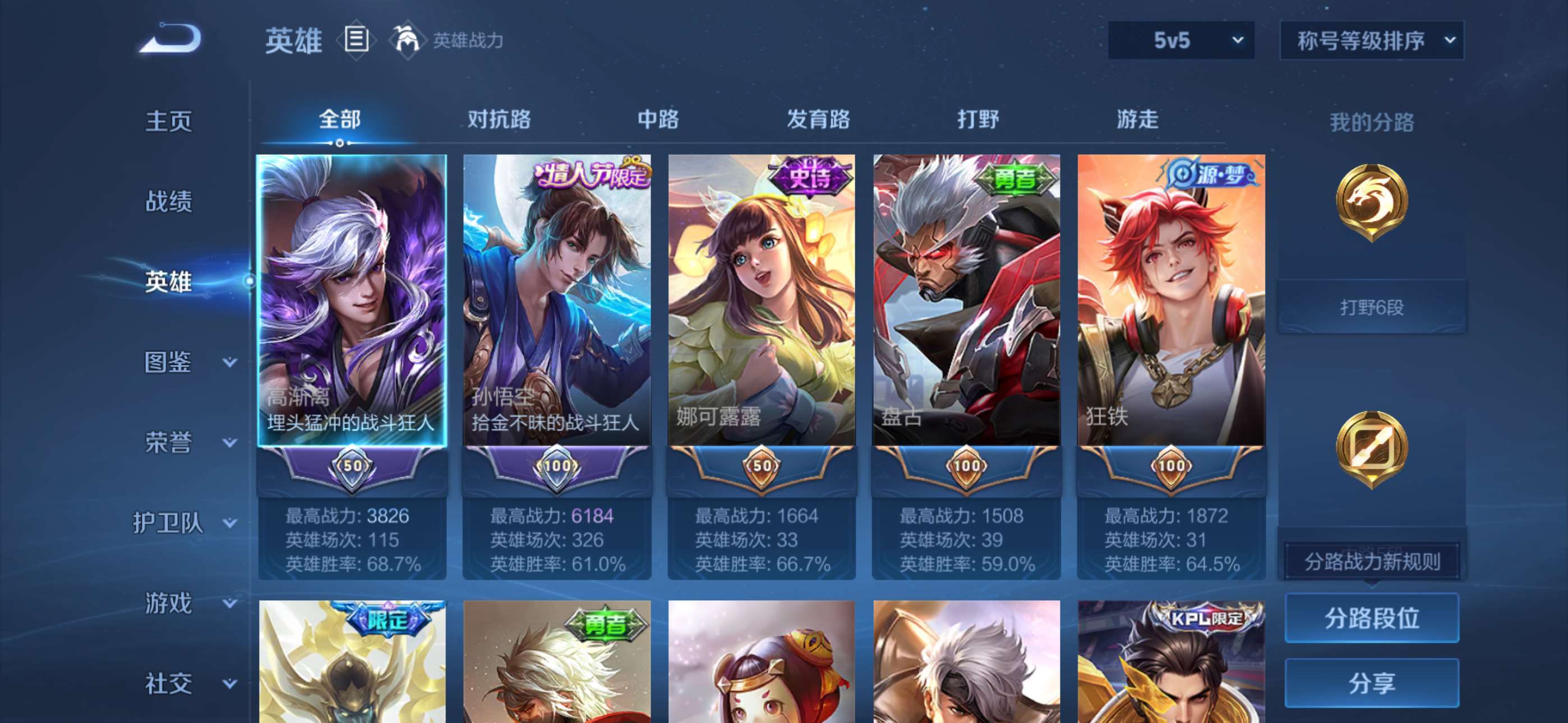 W10022【安卓区V8】可二次实名,英雄104,皮肤161,典藏:李白鸣剑.曳