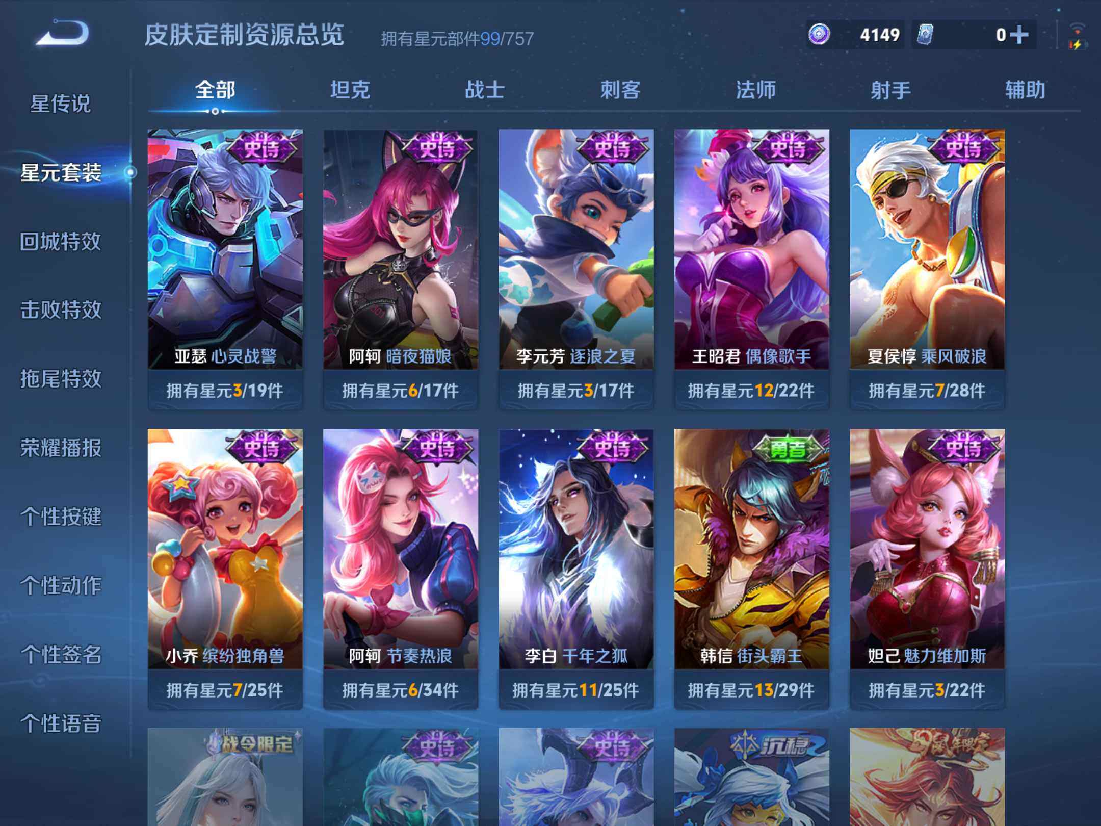 【战令限定】:李元芳银河之约,沈梦溪星空之诺,阿轲迷踪丽影,刘邦夺宝奇兵,镜青焰无极,项羽苍威无极,亚连破空之剑,孙悟空神迹守卫,周瑜线条小狗