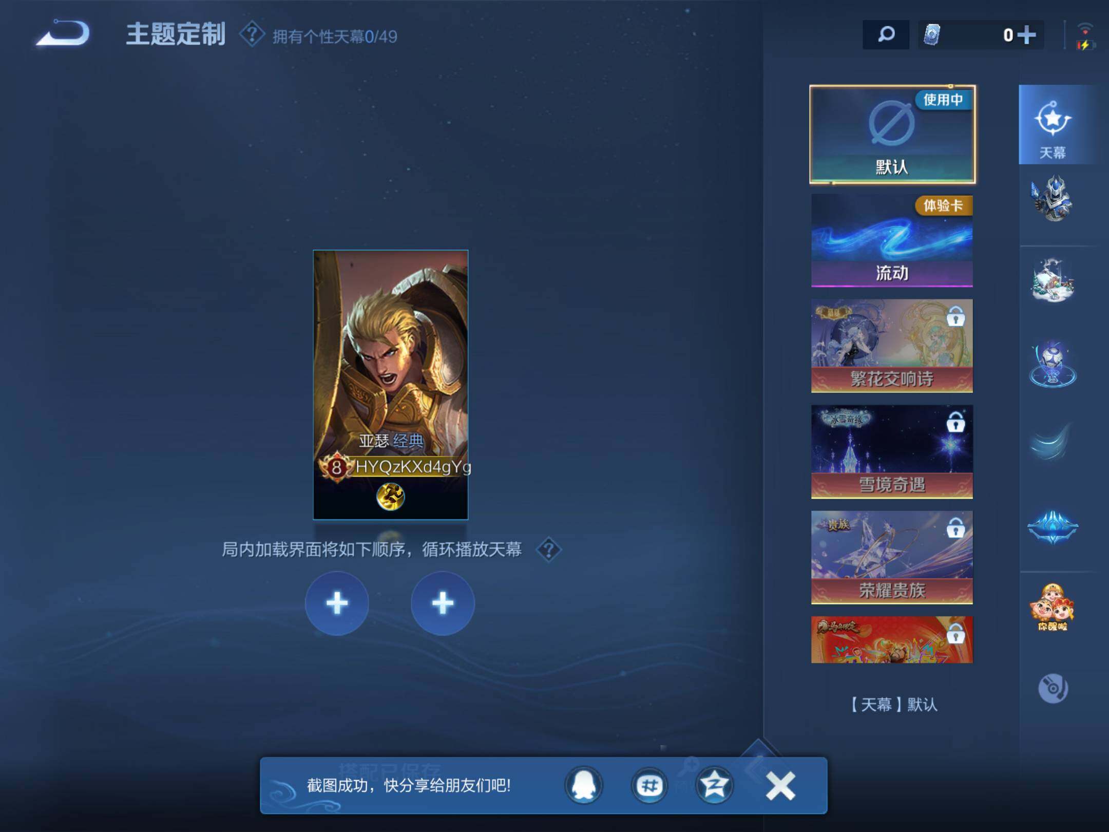 【史诗皮肤】:明世隐百晓客,周瑜线条小狗,黄忠百相守梦,牛魔星界战将,亚连破空之剑,蒙犽顽岩魄,关羽决胜骁骑,镜青焰无极,关羽百相守梦,刘备百相守梦,鬼谷子五谷丰年,庄周高山流水,孙悟空孙行者,云中君纤云弄巧,百里玄策原初追逐者,黄忠烈魂,阿轲迷踪丽影,不知火舞魅语,小乔青蛇,大