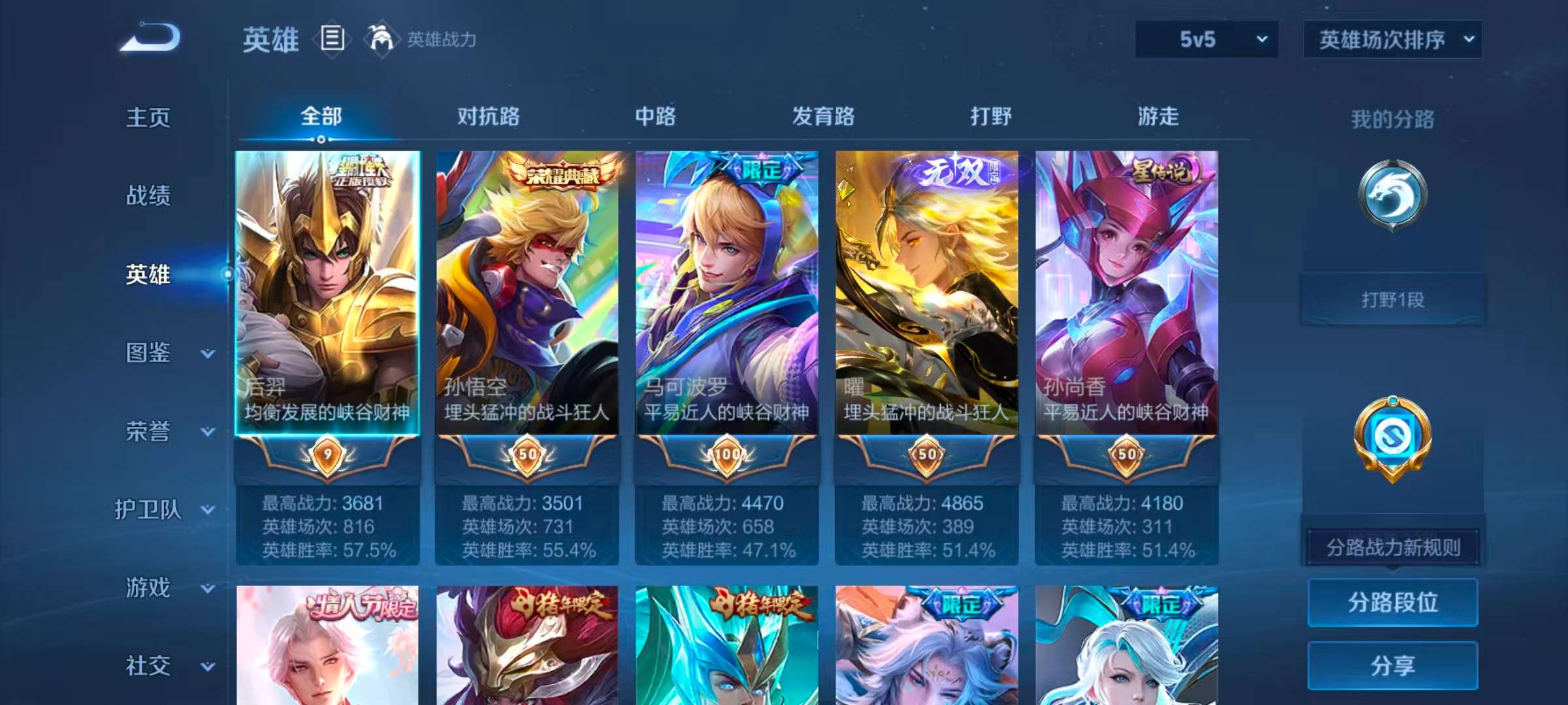 PX_2553994-Q/最强王者/496皮肤/129英雄/2典藏/0珍品无双/3无双/0珍品传说/58传说/160史诗/9稀有英雄
