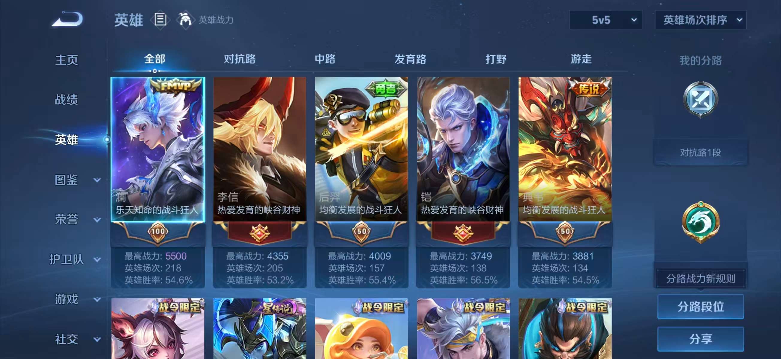 【6,稀有英雄】嬴政,不知火舞,橘右京,娜可露露,韩信,艾琳,