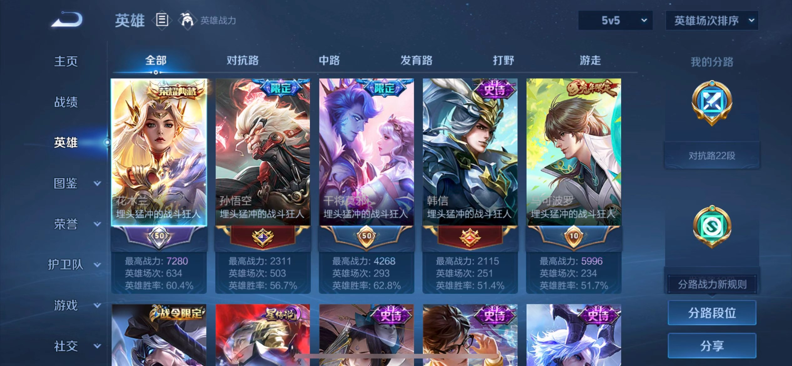 【8,稀有英雄】嬴政,不知火舞,橘右京,夏洛特,娜可露露,韩信,艾琳,赵云,