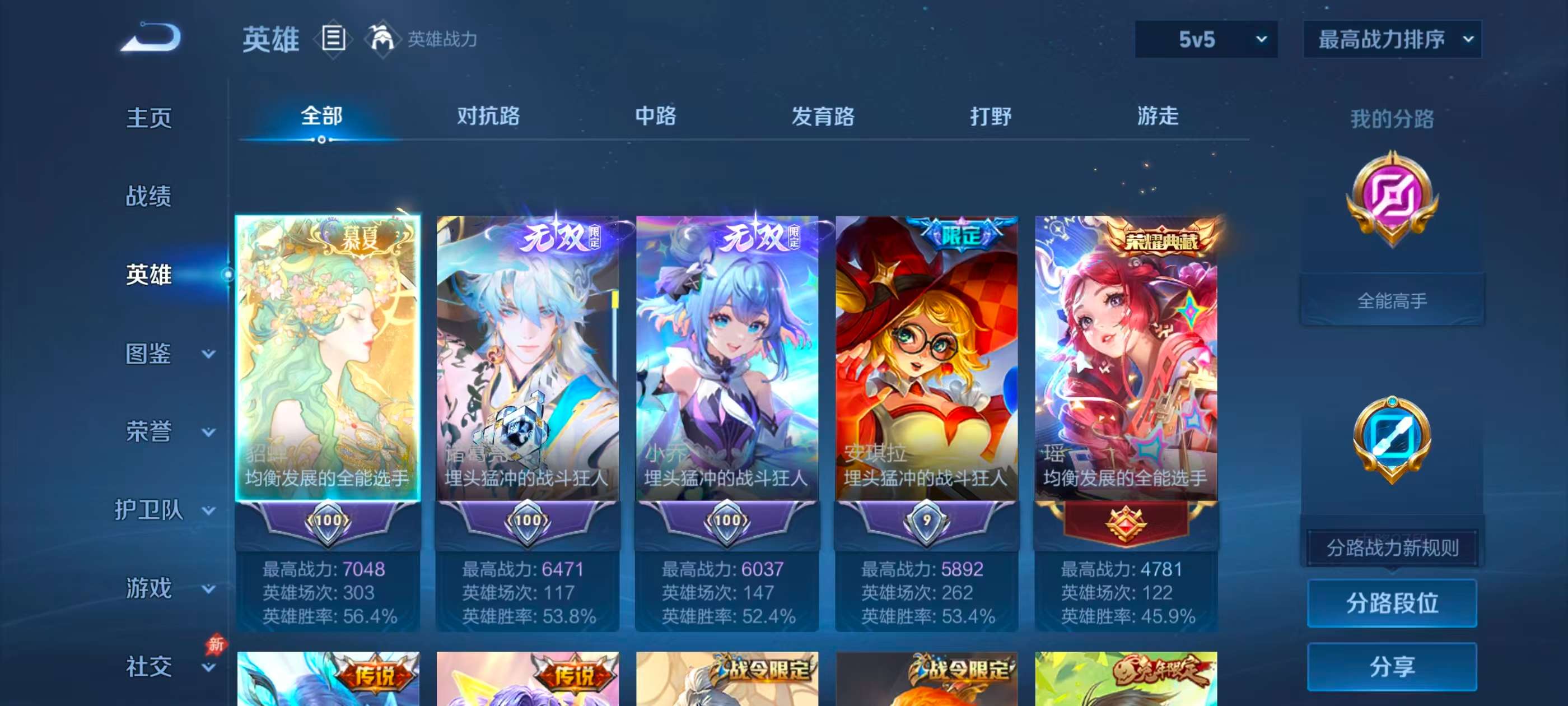 【8,稀有英雄】嬴政,不知火舞,橘右京,夏洛特,娜可露露,韩信,艾琳,赵云,
