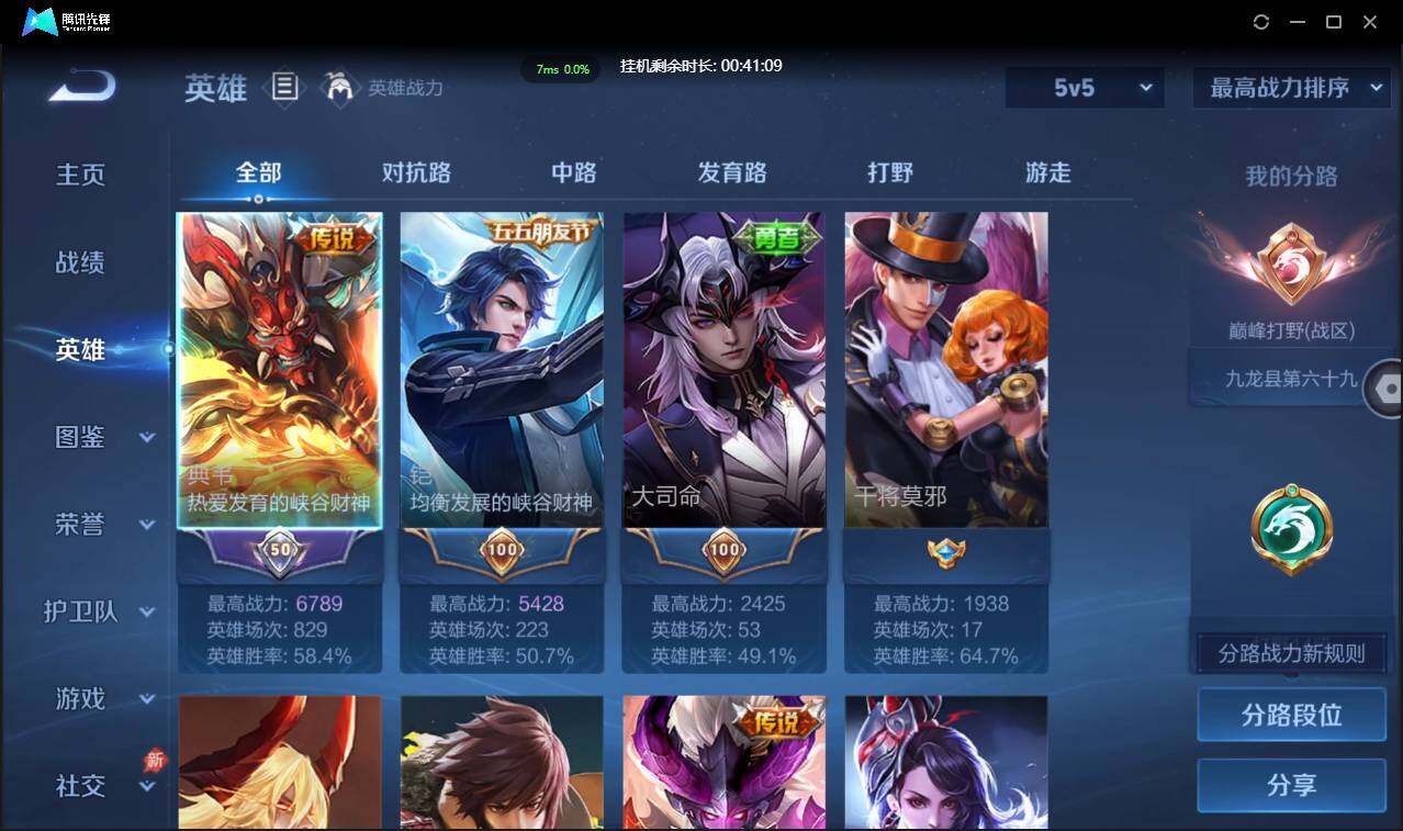 W10022【安卓区V8】可二次实名,英雄104,皮肤161,典藏:李白鸣剑.曳