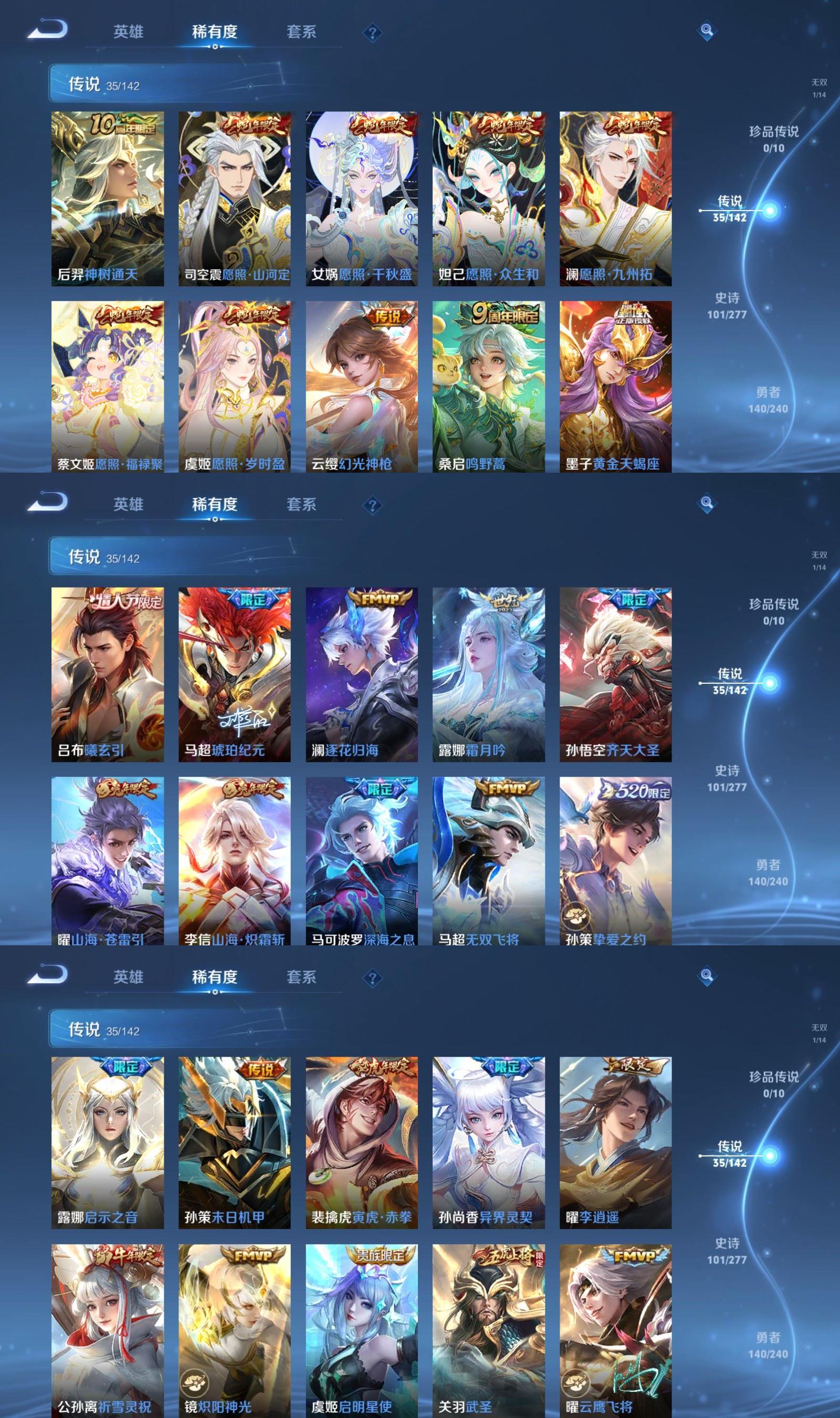 【传说】,黄金天蝎座,曦玄引吕布,逐花归海,马超琥珀纪元,神树通天,幻光神枪,愿照岁时盈,愿照千秋盛,愿照众生和,愿照九州拓,愿照山河定,愿照福禄聚,鸣野蒿,启明星使,祈雪灵祝,寅虎赤拳,山海苍雷引,山海炽霜斩,武圣,李逍遥,齐天大圣,武陵仙君,深海之息,异界灵契,启示之音,挚爱之约,霜月吟,无双飞将,炽阳神光,云鹰飞将,久胜战神,一念神魔,黄金狮子座,时之恋人男,末日机甲策,