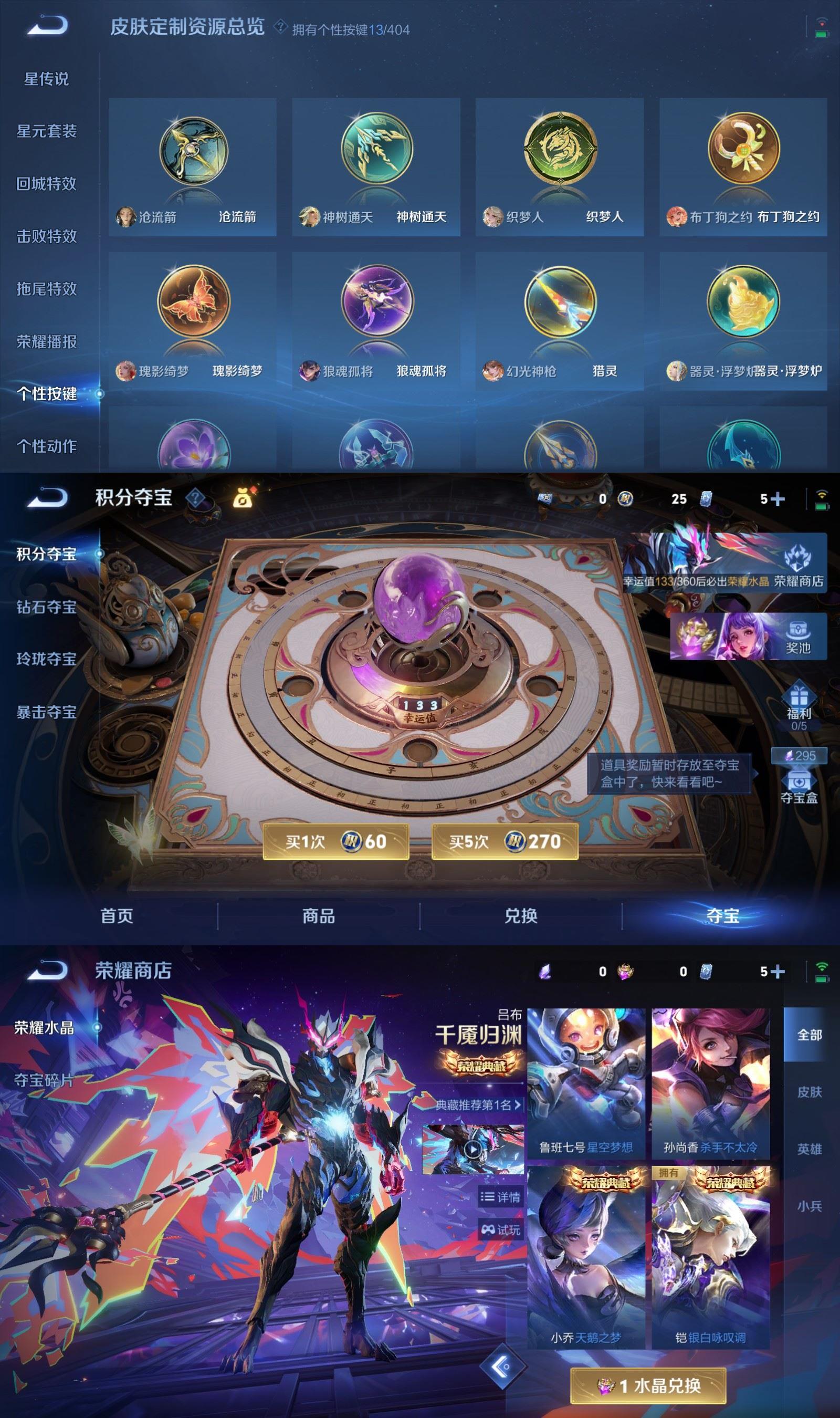 【传说】,战鼓燎原,神树通天,幻光神枪,愿照岁时盈,愿照山河定,鸣野蒿,乞巧织情,久胜战神,黄金狮子座,超时空战士男,地狱之眼,