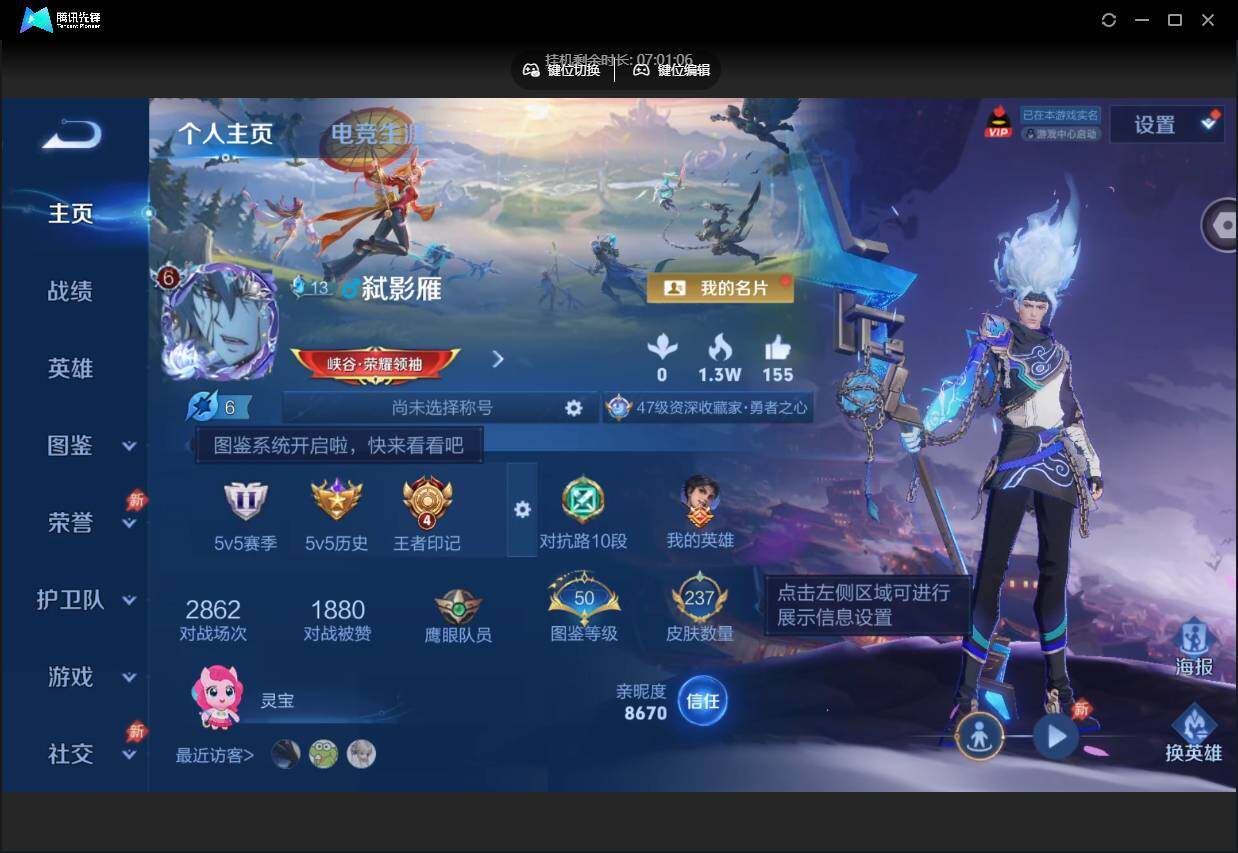 W10022【安卓区V8】可二次实名,英雄104,皮肤161,典藏:李白鸣剑.曳