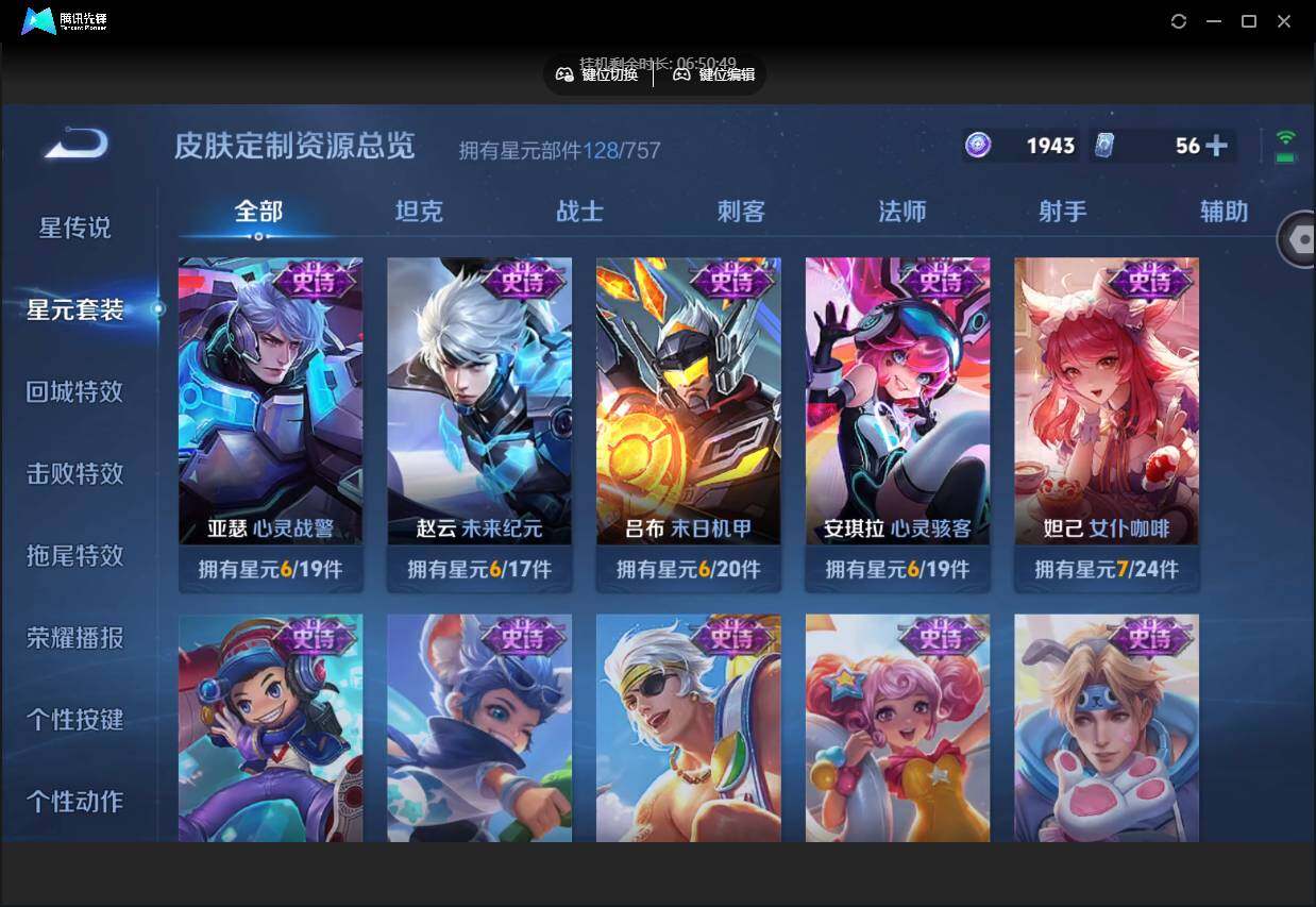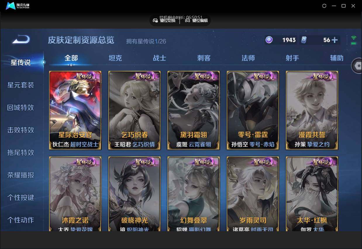 PX_2571961-【W6965】【2.8k场次小号】营地ID:1867183533【爆款臻稀皮肤:弑枪猎影-幻阙歌-绛天战甲-幻光神枪-云鹰飞将-冠军飞将-超时空战士-神树通天-鸣野蒿】可二次-贵6-127英雄-236皮肤-2典藏-1星元-9传说-1天幕-8按键-贵族积分1.4w,【星元皮肤】:狄仁杰星际治安官