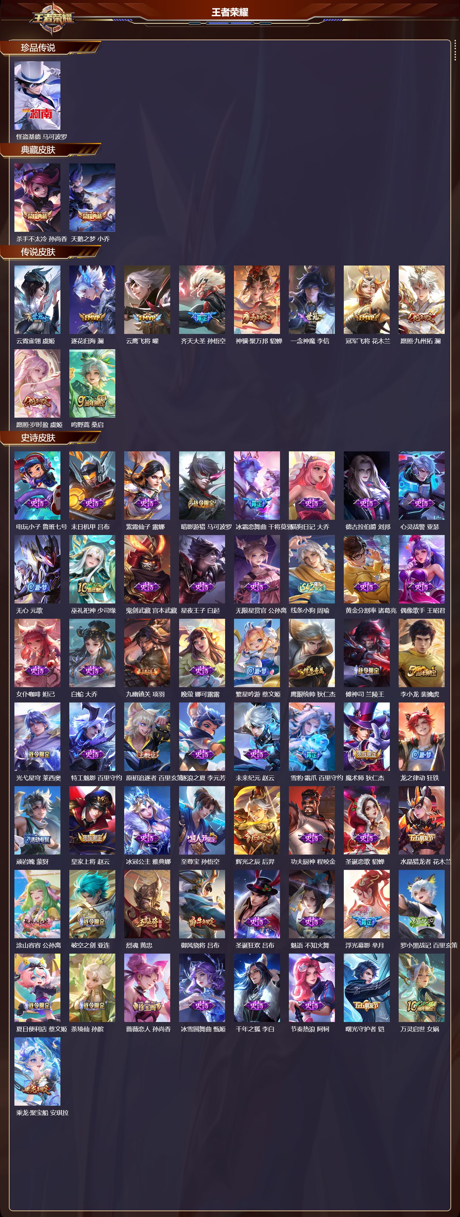 PX_2579232-Q/最强王者/206皮肤/129英雄/2典藏/0珍品无双/0无双/1珍品传说/10传说/68史诗/9稀有英雄
