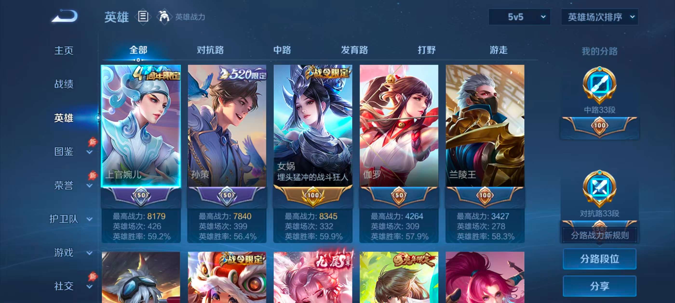 PX_2579364-Q/荣耀黄金/191皮肤/123英雄/0典藏/0珍品无双/1无双/0珍品传说/7传说/36史诗/7稀有英雄