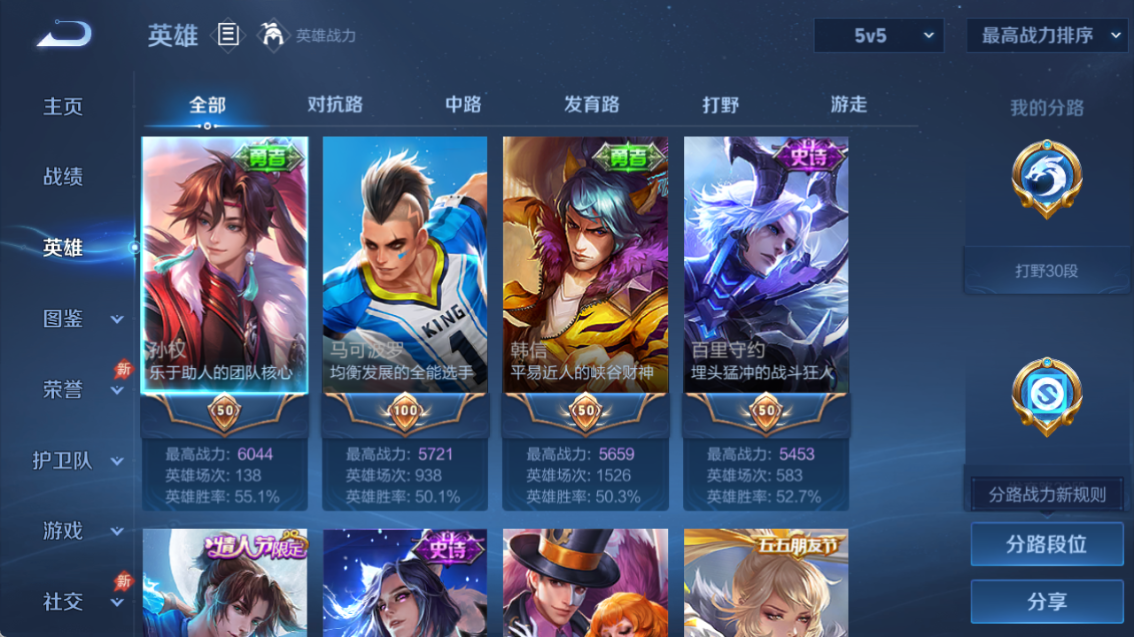 W10022【安卓区V8】可二次实名,英雄104,皮肤161,典藏:李白鸣剑.曳