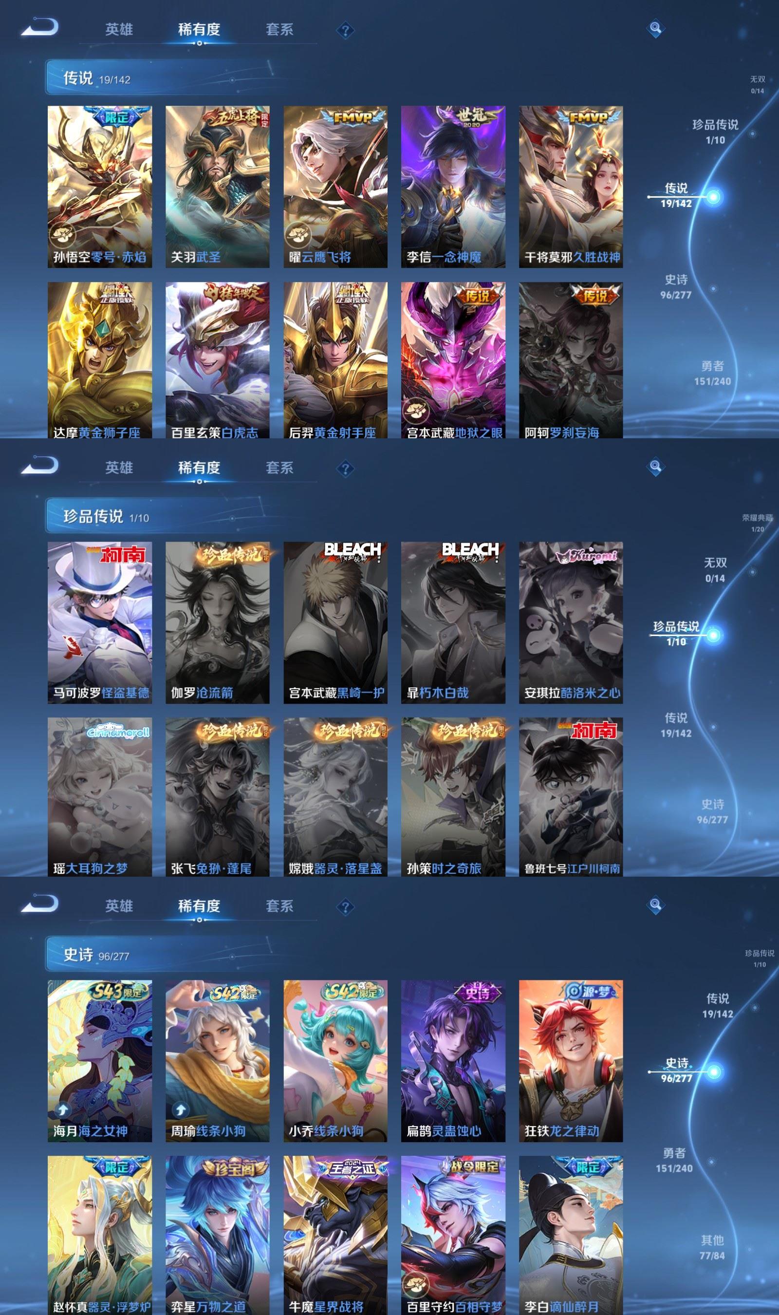 【传说】,黄金天蝎座,乘龙淬吴钩,神骥逐星野,愿照九州拓,鸣野蒿,白虎志,启明星使,寅虎赤拳,武圣,零号赤焰,淬星耀世,无双飞将,炽阳神光,云鹰飞将,久胜战神,一念神魔,黄金狮子座,黄金射手座,地狱之眼,