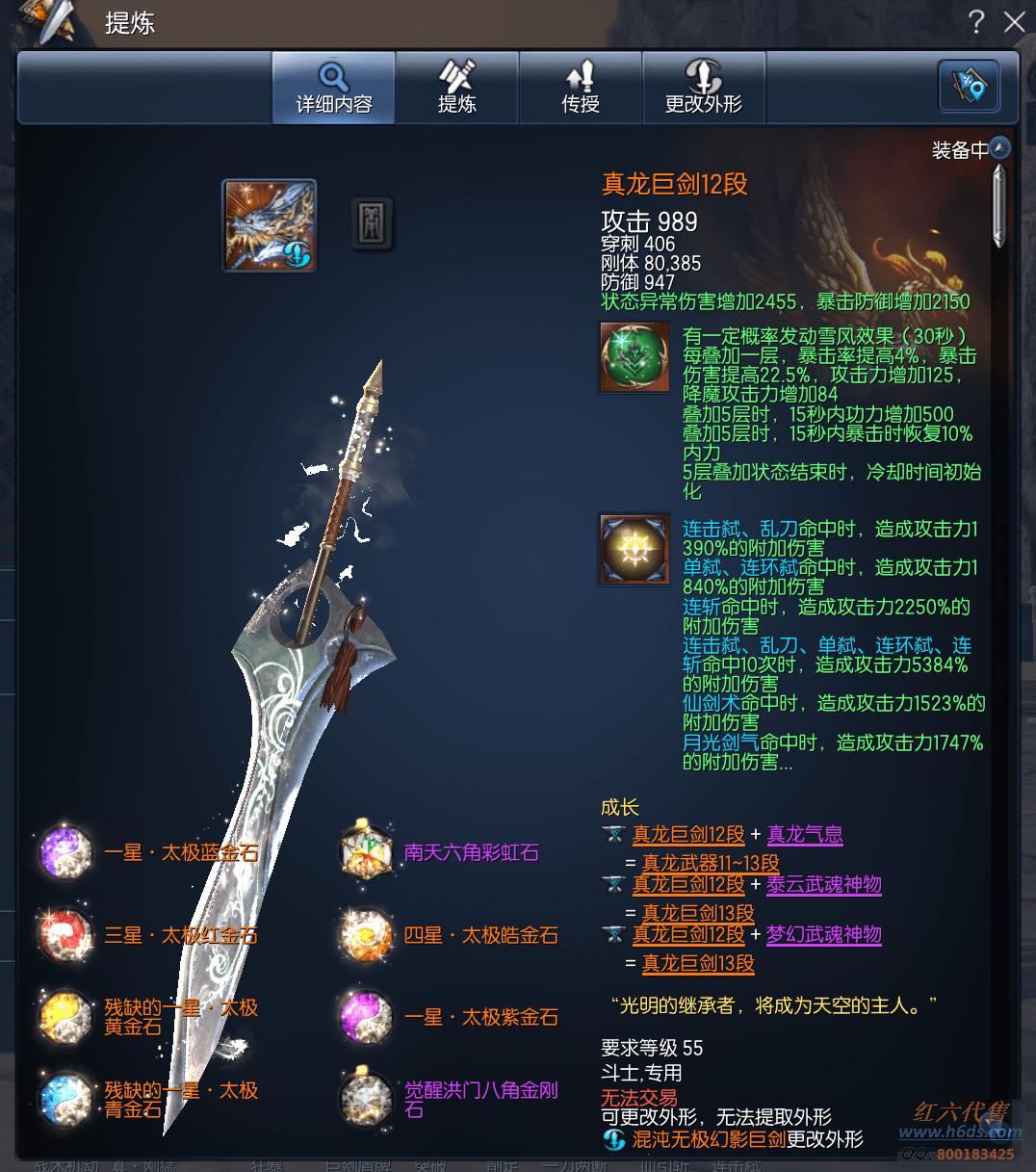 编号J13040,无日峰斗士,侠义团132段,四星太极石,三星太极石,一星太极石x4,雪峰元气石12段,征伐真气石14段,邪花巨剑13段,真龙巨剑12段,卓越天目戒指3段,卓越邪花耳环3段,卓越邪花项链3段,极虎手镯1段,光雷手镯12段,狂天腰带12段,天佑手套12段,邪花秘功牌8段 ,无穷神功牌8段,武扬神功牌8段,毁灭南天魂11段,觉醒凤凰灵15段,不灭守护石1段,晨晖星15段,衣服142,《起手:5000 稳定:1800》到手5000R,
