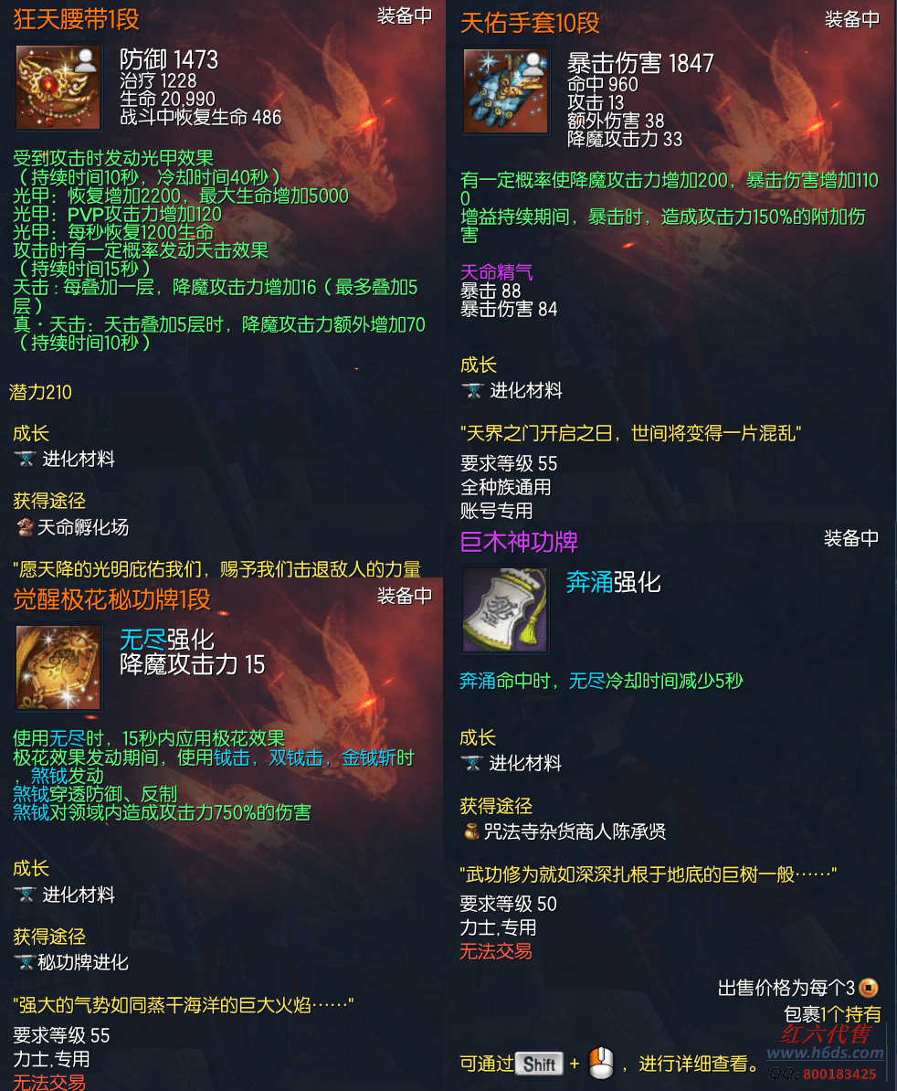 J13388,无日峰力士,侠义团75段,一星太极石,雪峰元气石8段,天罚真气石11段,邪花斧头11段,卓越暗海戒指3段,泰天耳环10段,泰天项链8段,光雾手镯5段,狂天腰带1段,天佑手套10段,觉醒极花秘功牌1段,巨木神功牌,毁灭梦幻魂12段,觉醒凤凰灵1段,极限守护石3段,晨晖星1段,衣服40,1999R,
