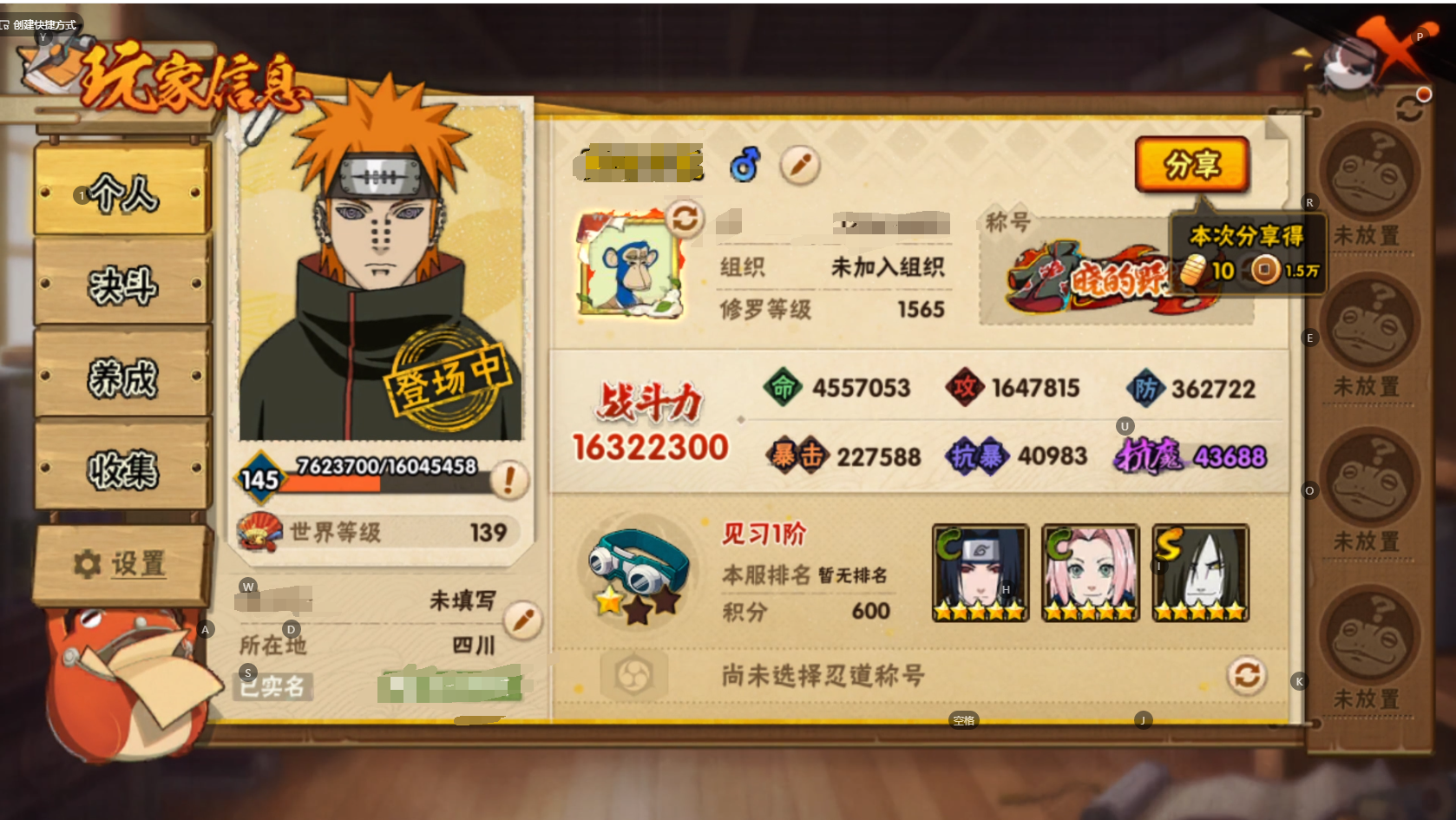 迷恋火影11/微信苹果56区/145级/贵族11/一千六百万战力/22S/41A/大蛇丸/千手扉间/须佐能平宇智波鼬/自来也/纲手/猿飞日斩/秽土转生宇智波鼬/四代目雷影艾/仙人模式自来也/百豪纲手/波风水门/秽土转生波风水门/秽土转生猿飞日斩/秽土转生千手扉间/千手柱间/宇智波斑/神秘面具男/白面具宇智波鼬/三代目土影大野木/二代目土影无/天道佩恩/秽土转生长门/各种通灵/细节看图