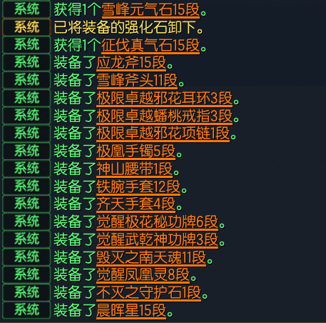 10853,无日峰力士,三星太极石,四星太极石,雪峰元气石15段,征伐真气石15段,应龙15段,雪峰斧头11段,卓越蟠桃戒指3段,卓越邪花耳环3段,卓越邪花项链1段,极凰手镯5段,神山腰带1段,铁腕手套12段,齐天手套4段,极花秘功牌6段,武乾神功牌3段,南天魂11段,觉醒凤凰灵8段,晨晖星15段,《送20星召唤,一手号》《材料金币不算》16000R,