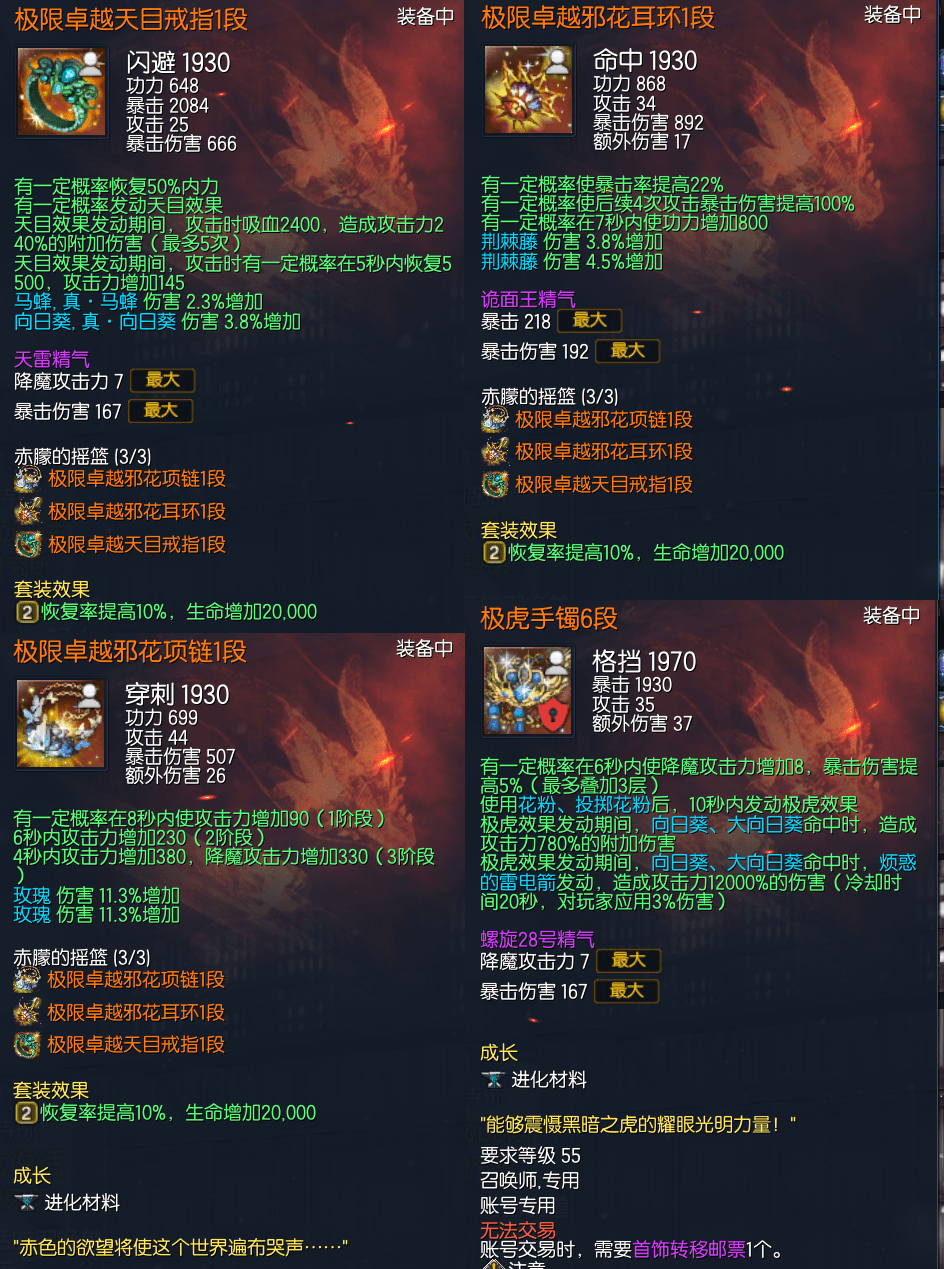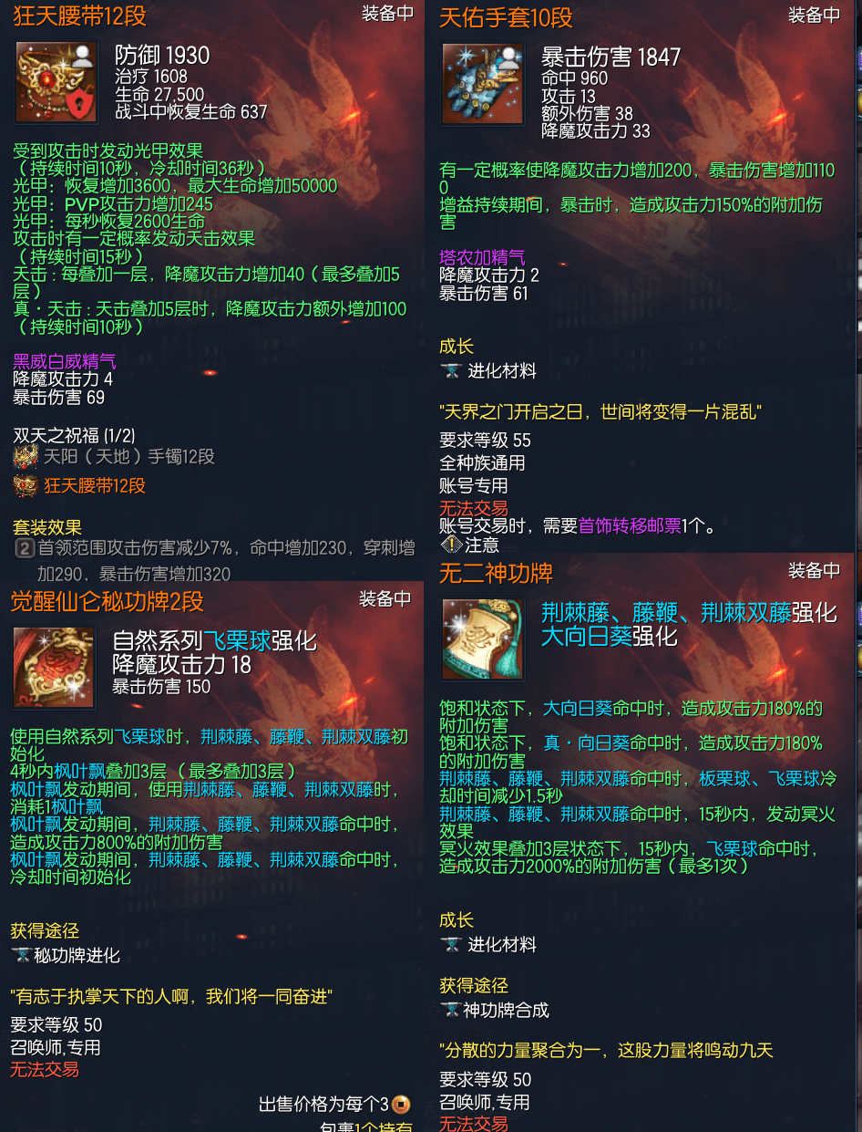 J15211,UP火箭区直上云霄召唤师,侠义团78段,南天三角彩虹石,邪花元气石13段,天罚真气石11段,雪峰法杖11段,卓越天目戒指1段,卓越邪花耳环1段,卓越邪花项链1段,极虎手镯6段,狂天腰带12段,天佑手套10段,觉醒仙仑秘功牌2段,无二神功牌,苦痛泰云魂15段,觉醒凤凰灵8段,烬灭守护石5段,晨晖星8段,衣服100,《秒伤1300,稳定900,是个好看的女儿角色》1000R,
