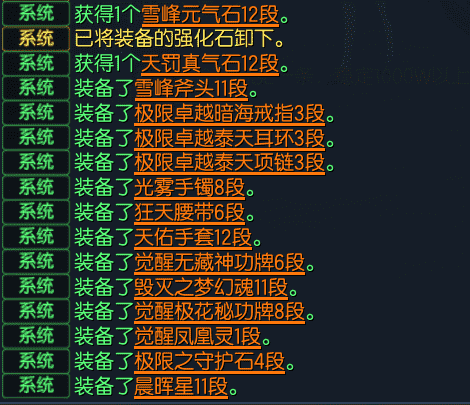 10885,无日峰力士,雪峰元气石12段,天罚真气石12段,雪峰斧头11段,卓越暗海戒指3段,卓越泰天耳环3段,卓越泰天项链3段,光雾手镯8段,狂天腰带6段,天佑手套12段,极花秘功牌8段,无藏神功牌6段,梦幻魂11段,觉醒凤凰灵1段,晨晖星11段,《同账号送灵剑,起手2300w稳定800w》5500R,