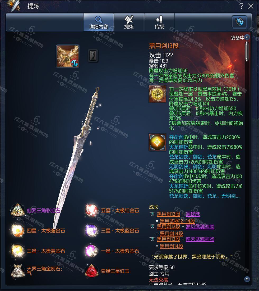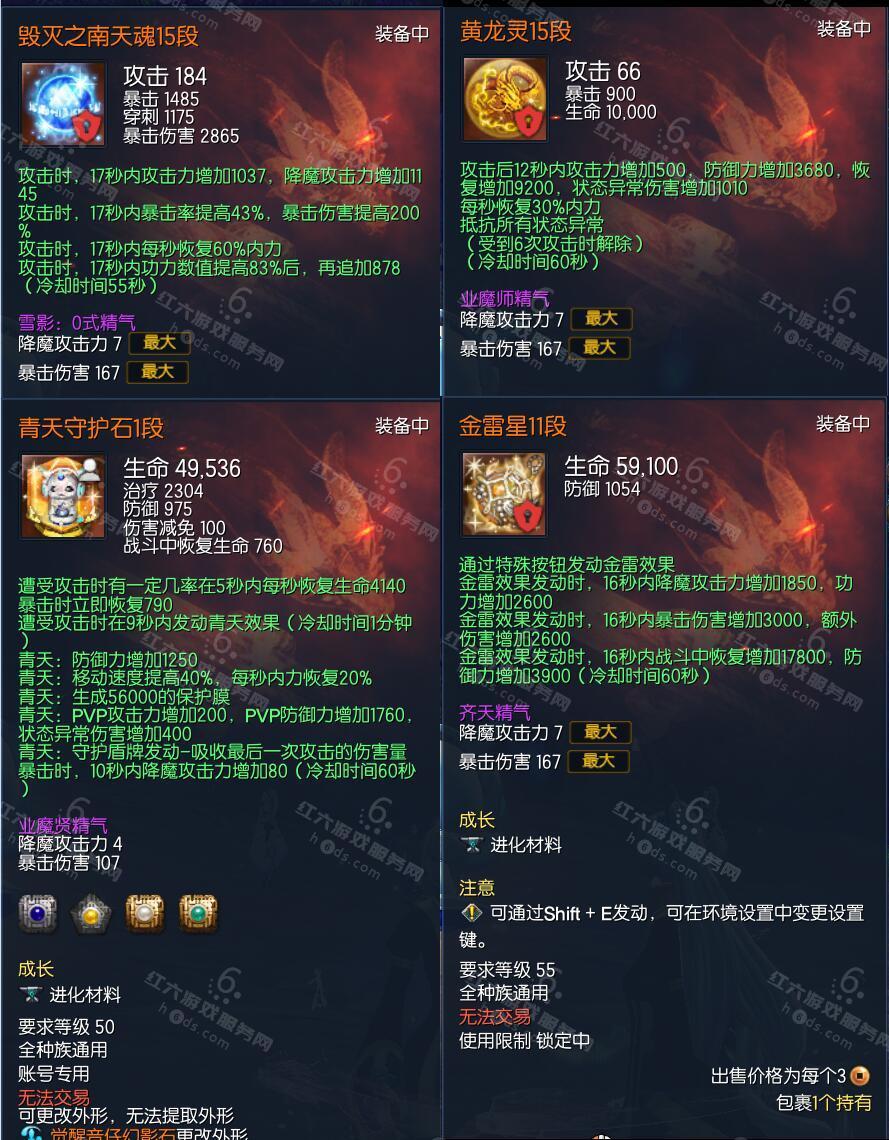 J15659,无日峰剑士,侠义团108段,仙界三角彩虹石,五行太极红金石,天界三角金刚石气,四星太极皓金石,三星太极×2,黑月剑13,黑月元气12,黑月真气11,极限卓越蟠桃戒指3,极限卓越雪峰耳环3,极限卓越雪峰项链3,极凰手镯12,神山腰带12,齐天手套12,觉醒极花秘功牌8,觉醒武仙神功牌8,毁灭南天魂15,黄龙灵15,青天守护石1,金雷星11,衣服243件,《稳定3600w》,8000R,