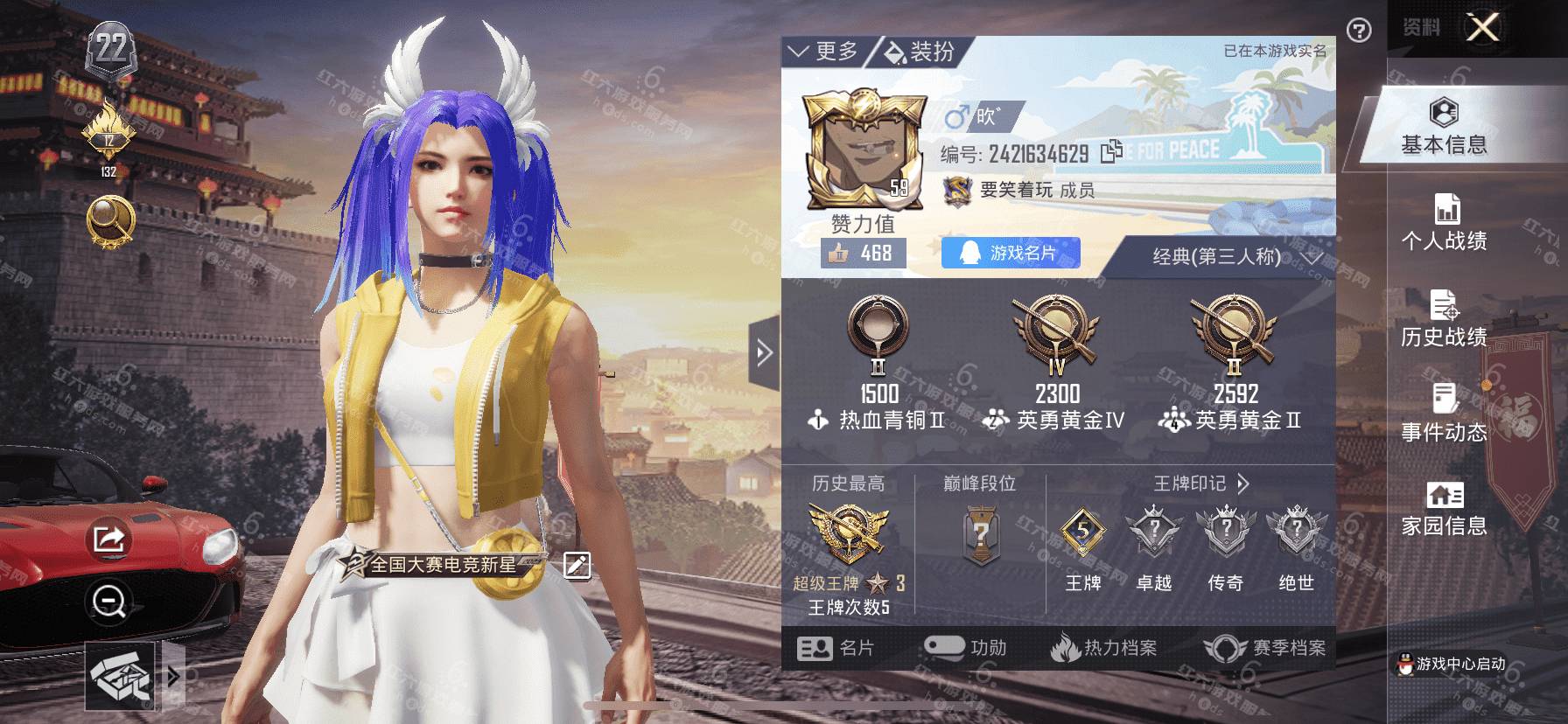 Z001苹果V,可二次实名,历史最高段位超级王牌,76套装(6粉)甜蜜誓约、心之