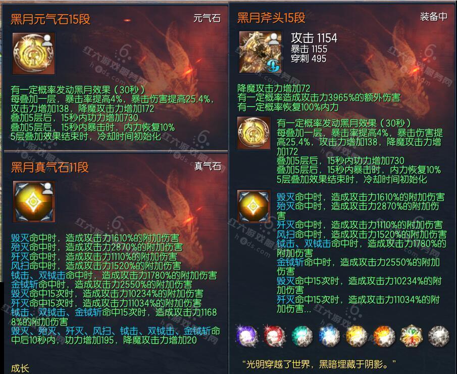 J11111,无日峰斗士,六合金环焕彩石,侠义团180段,降龙六角石×4,降龙五