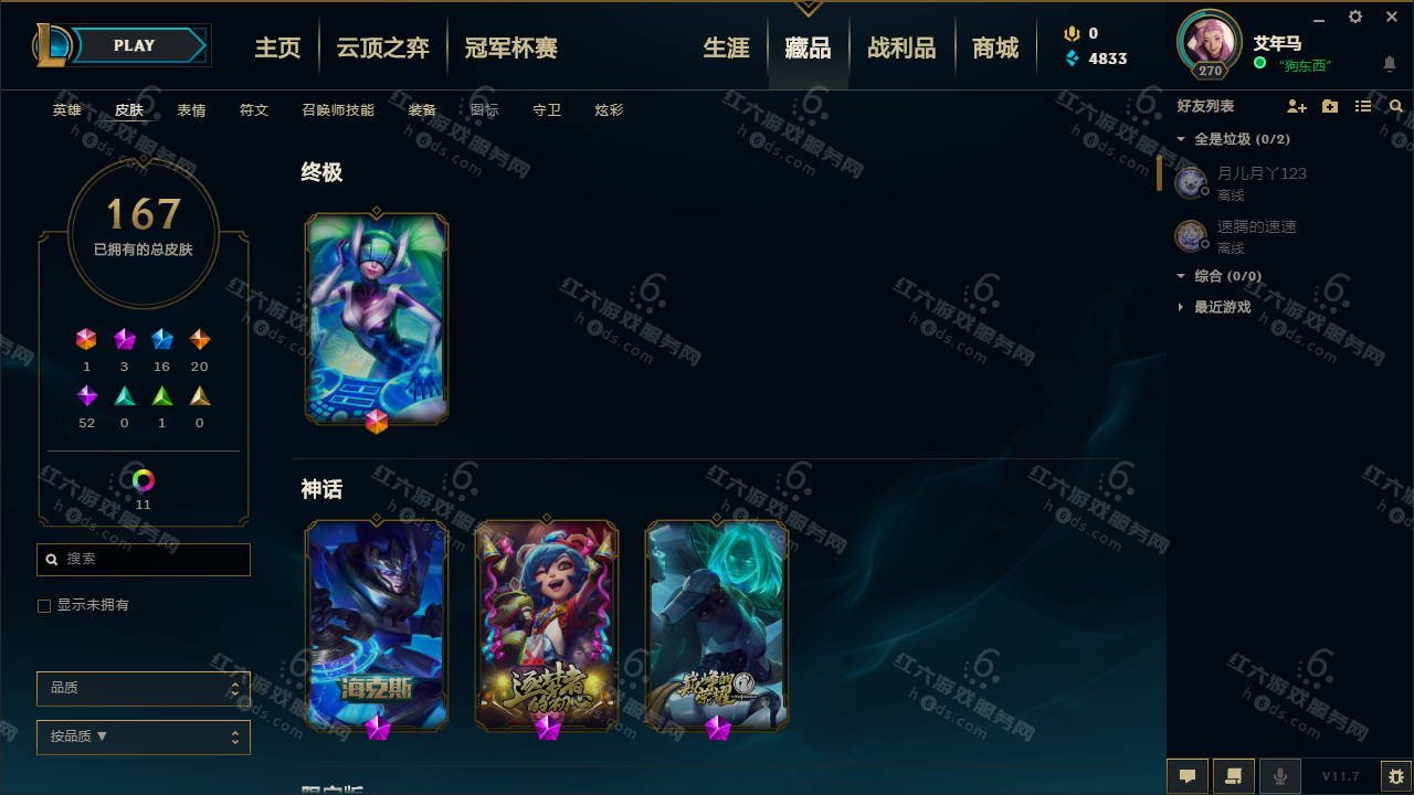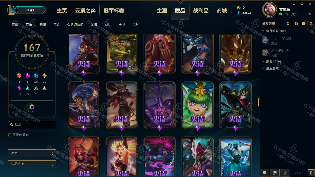 Y10044,艾欧尼亚/162英雄/472皮肤/23炫彩/1终极/71传说/源计