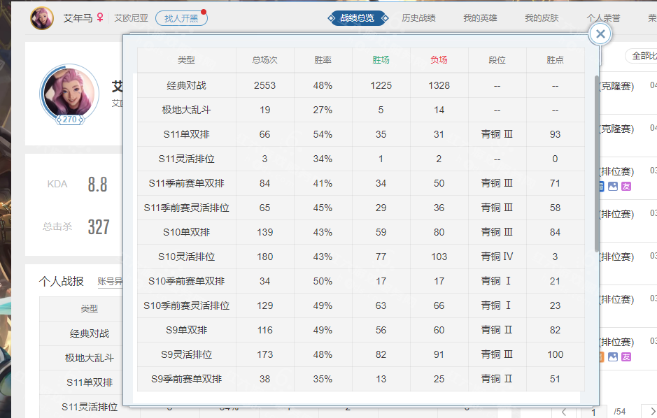 Y10022,电信,守望之海,456级,单排铂金4,155个英雄,351个精品皮