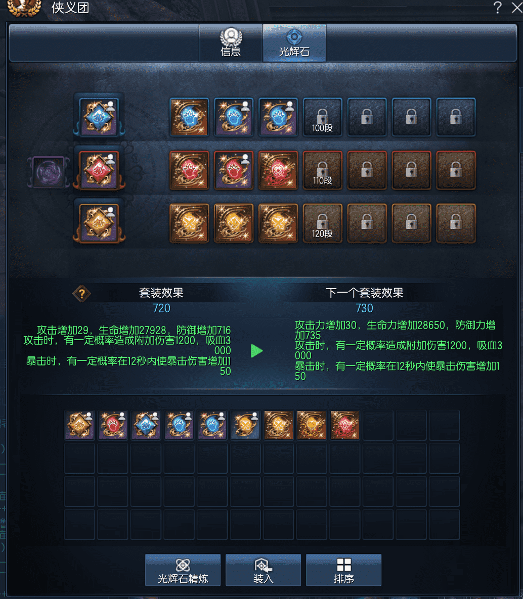 J11111,无日峰斗士,六合金环焕彩石,侠义团180段,降龙六角石×4,降龙五