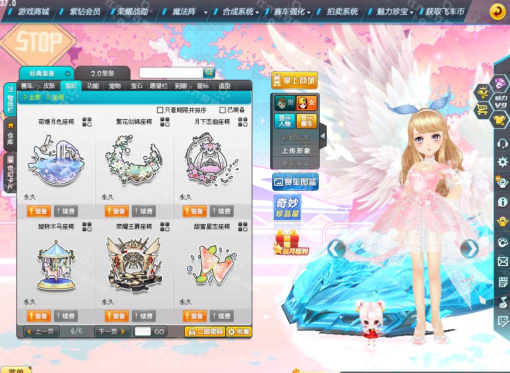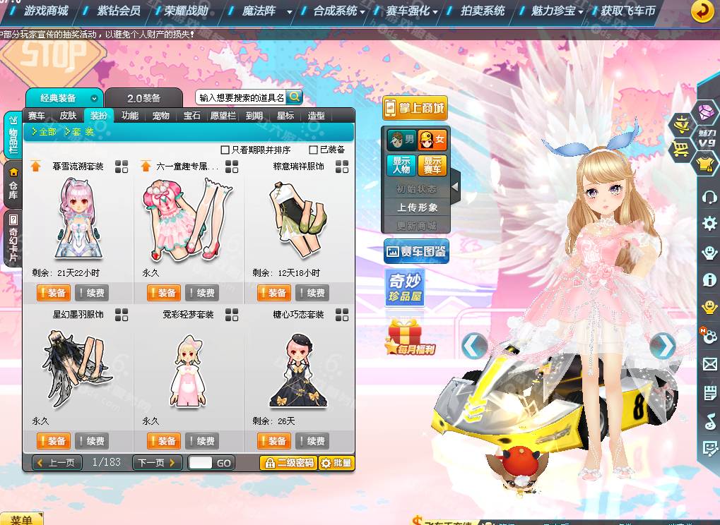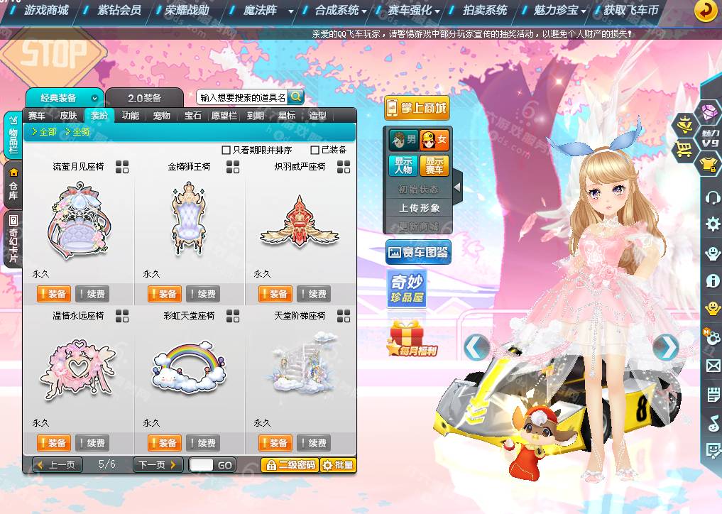 DS2977,详询40262654【电信一区】女衣柜197页,大天使翅膀,魅力17W,荣誉2861W,紫钻7,皇族7,S车;双四至尊冰凤+29,双四终极爆天甲刘备+29,双四众神之神哪吒+29,A车*24;双四魔王雷诺+29,双四雷诺+29,双四战争雷诺,T1*4,骑宠*32;神笔牛牛+10,梅灵婉香+10,子鼠灵韵+10,喜羊羊,星河绘画师,翰辰龙王,坐骑*25,套装男61页,套装女197页,发饰60页,鱼夜情缘,绘梦天鹅,绮丽梦游发饰,查看衣柜录屏联系红六客服,11088R,