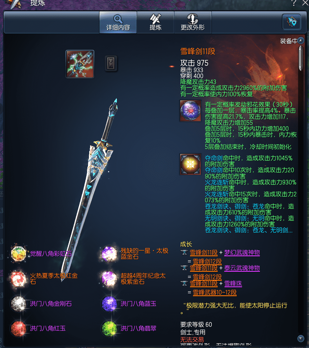 11072,电一落日星辉剑士,邪花元气石14段,天罚真气石11段,泰天剑4段,雪峰剑11段,卓越天目戒指1段,卓越邪花耳环2段,卓越泰天项链2段,光雾手镯5段,狂天腰带1段,天佑手套8段,极花秘功牌8段,断金神功牌,毁灭梦幻魂12段,凤凰灵3段,极限守护石1段,晨晖星11段,《起手2800,超神增幅3500,稳定1000》3500R,