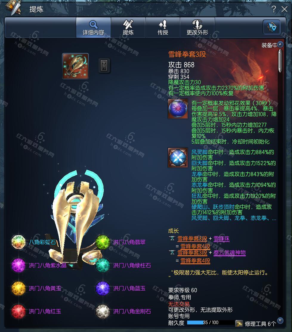 J11111,无日峰斗士,六合金环焕彩石,侠义团180段,降龙六角石×4,降龙五