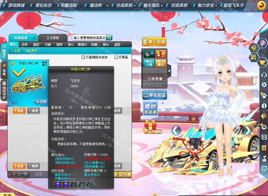 DS3125,红六更号裙777584596【电信一区】,魅力2.4w,荣誉664w,S车:双四终极众神之神+29,T2:复仇天使,A车*9,C车:飞碟,骑宠*17:哪吒三太子+8,坐骑*7,套装男10页,套装女47页,1588R,