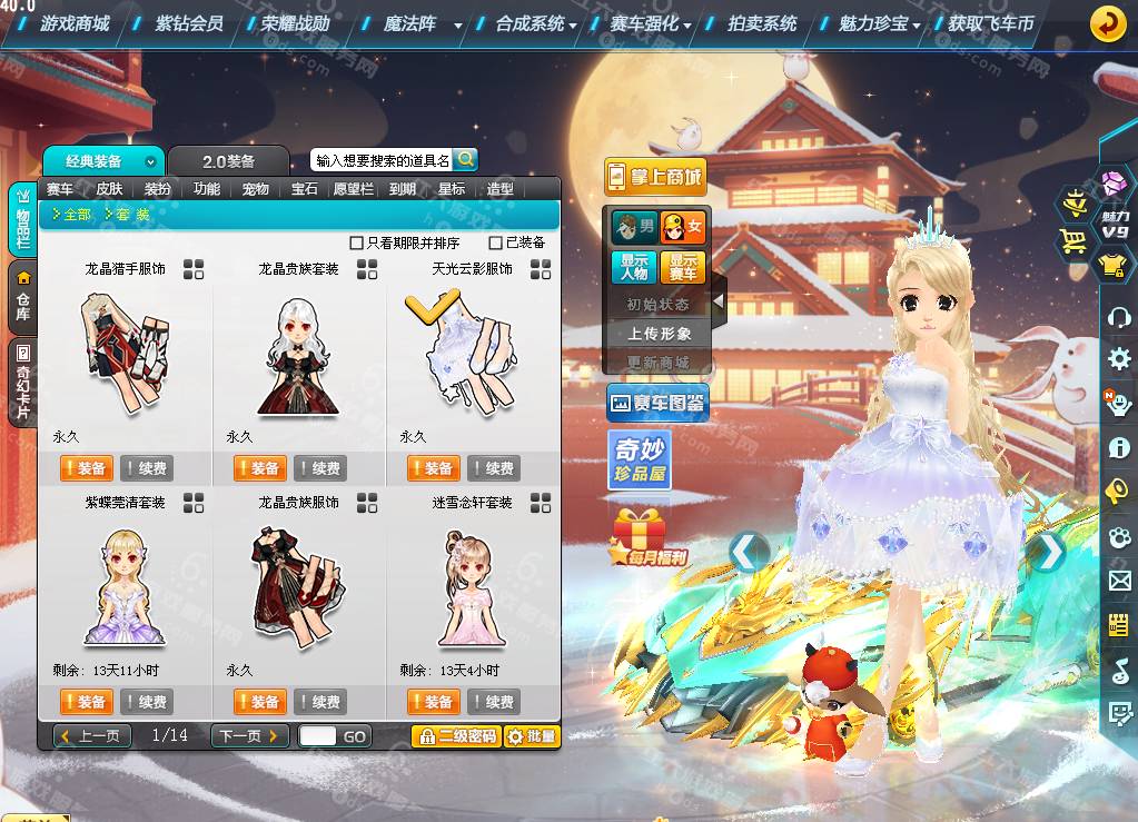 DS2014【电信一区】魅力3.1W,荣誉706W,紫钻6,皇族3级,S车*8;双四至尊玉麒麟+29,双四众神乾坤10阶+29,双四爆天雷诺(绯红冰蓝)+29,双四至尊爆天甲+29,暴风雪,至尊王者剃刀,终极烈焰新星,龙胆逆鳞,T2;凌霜圣使,A车*13;双四雷诺+29,C车;飞碟,宠物*14,骑宠*14;神笔牛牛+10,坐骑*3,套装男28页,套装女11页,苍穹麒麟男,一叶知秋男,15999R