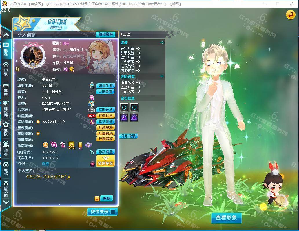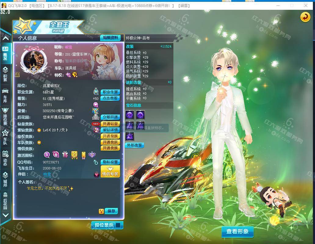 电信一区,201级,魅力31571,终极众神之神吕布,5项29,全满4级宝石,裁决者4级道具宝石,还有380夺宝劵,男套装46页,多款悬浮动作套,动作悬浮套装 蒲公英 鱼夜 浮生世语 清风扶柳 头饰金玉良缘 星海祈愿,练狱之刃激活10,2个竞速宠物激活10 小吕布,哪吒
