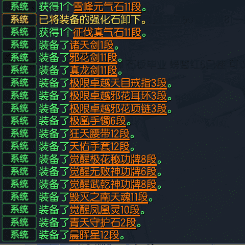 11211,无日峰剑士,侠义团100段,三星太极石x3,四星太极石,雪峰元气石11段,征伐真气石11段,诸天剑1段,邪花剑11段,真龙剑11段,卓越天目戒指3段,卓越邪花耳环3段,卓越邪花项链3段,极凰手镯6段,狂天腰带12段,天佑手套12段,极花秘功牌8段,无败神功牌6段,武乾神功牌8段,毁灭南天魂11段,觉醒凤凰灵10段,青天守护石2段,晨晖星12段,衣服210件,《起手4500稳定1700圣地打完1500》9000R,